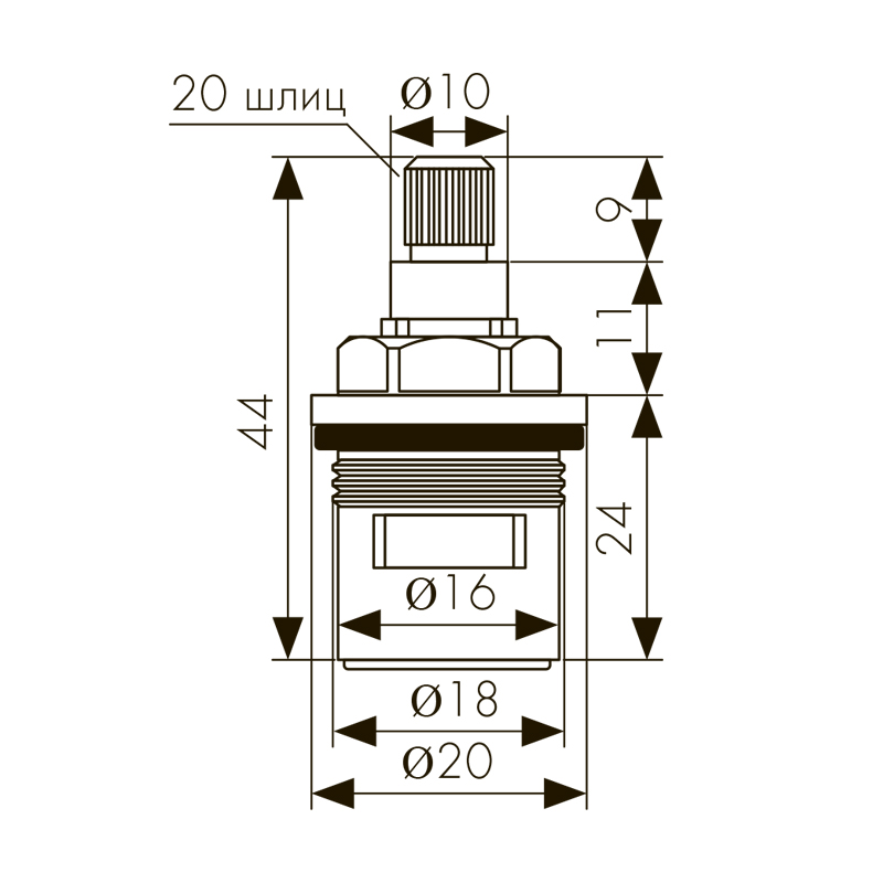 Кран-букса KАISER для 13044 и против. перекл. 40144/31144/31145/31244/31744/31844 (2-ая модифик.) (стар. арт 13KR)