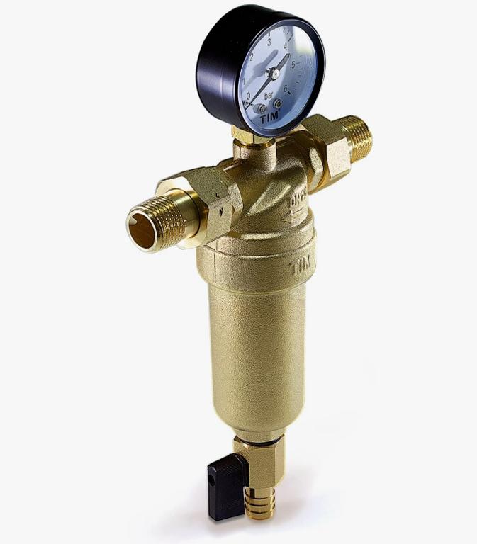 Фильтр тонкой очистки 1/2 TIM с манометром (латунь) /JH-1001
