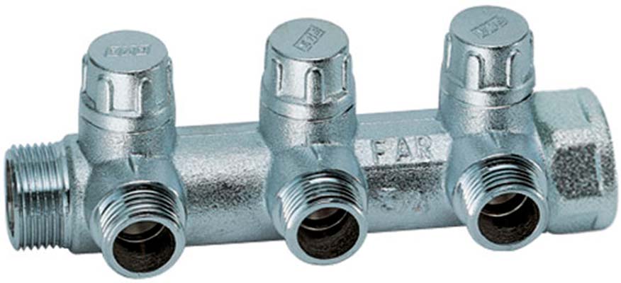 FAR Коллектор ЗАПОРНЫЙ 1" х 3/4" - 3 вых. (д.р.) регулируемый