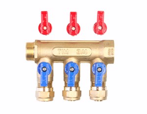 Коллектор TIM м/п 3/4" х 16 х 3 вых.универсальный (кр+син)