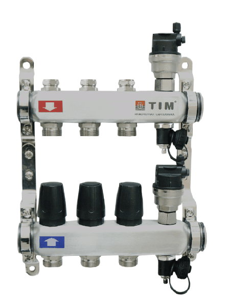 Коллекторная группа (отопл) без расходомеров и кранов 1", 3 хода TIM, нерж, (КВАДРАТ)