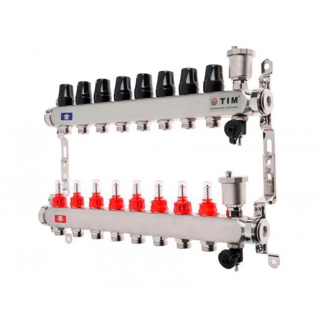 Коллекторная группа с расходомерами 1", 12 хода, нерж, без кранов (КВАДРАТ) TIM
