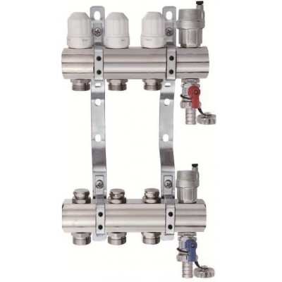 Коллекторная группа с воздухоотводчиком TIM 1", 3 хода, латунь