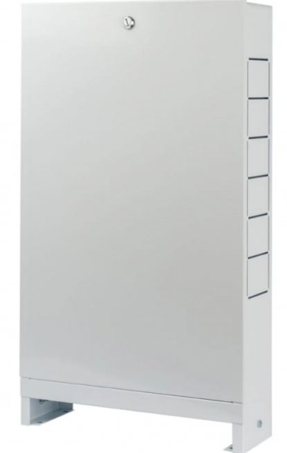 Распределительный встроенный шкаф STOUT ШРН-1 4-5 выходов 651x120x454 представляет собой идеальное решение для организации и размещения распределительных коллекторов радиаторного отопления, системы напольного отопления и водопровода.