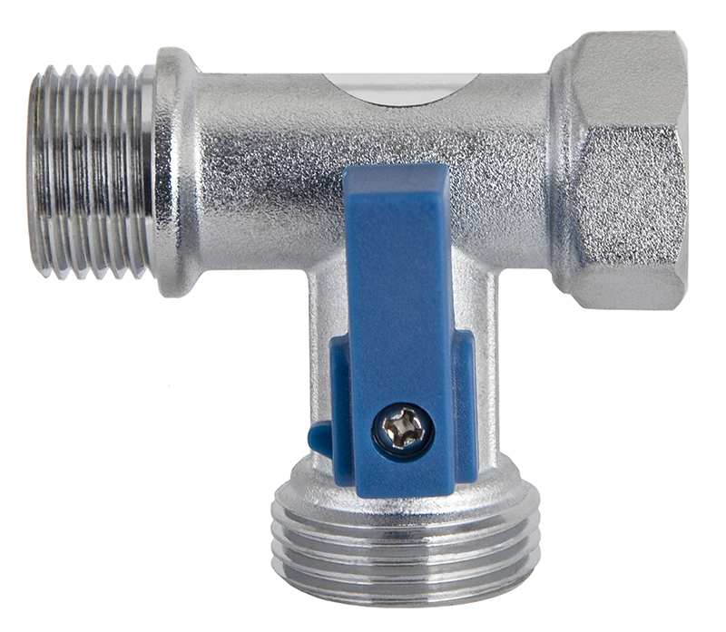 Кран KAISER стир. прох. 1/2"х3/4"х1/2" под ключ /синяя ручка/