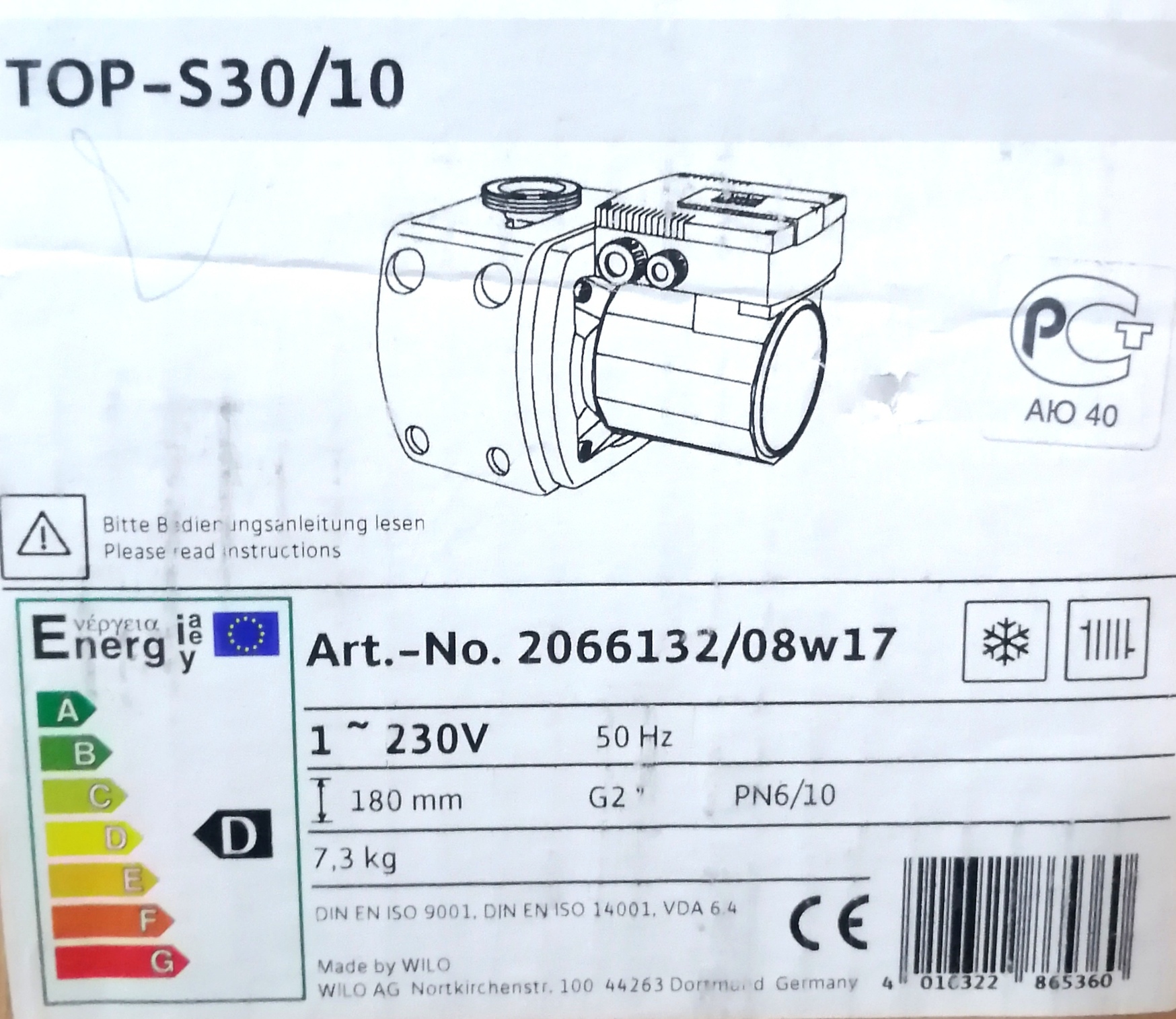 Насос WILO TOP-S 30/10 -180мм PN6/10
