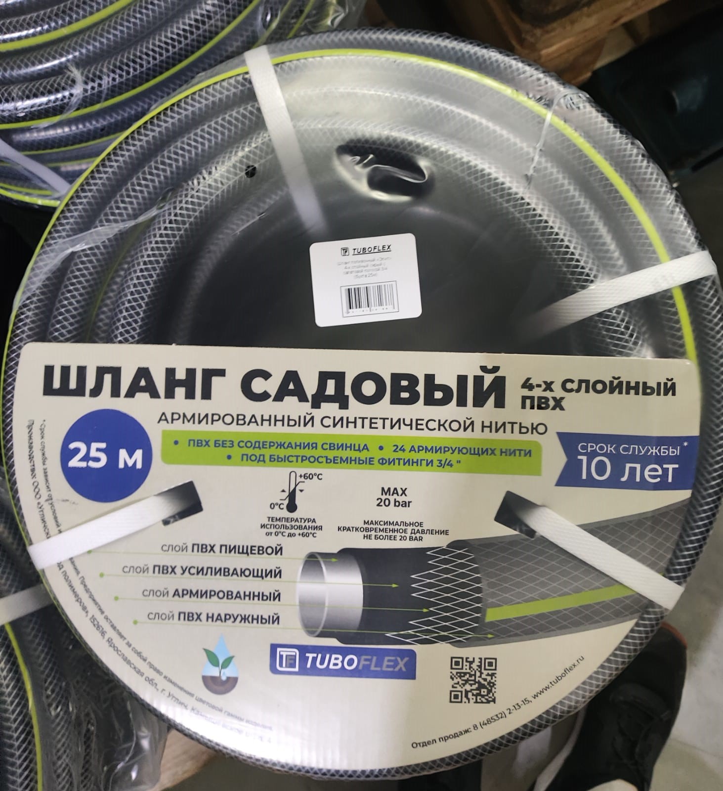 Шланг поливочный 4-х слойный "элит" 3/4 (серый с салатовой полосой) 50 м.