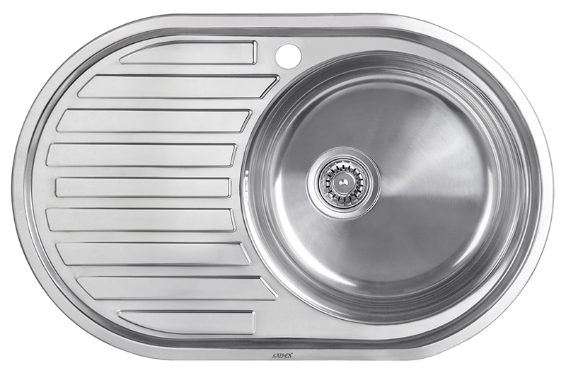 Мойка-Нерж "KAISER" врезная 770x500*180*0.8mm, чаша Ø390мм, хром овальная/правая