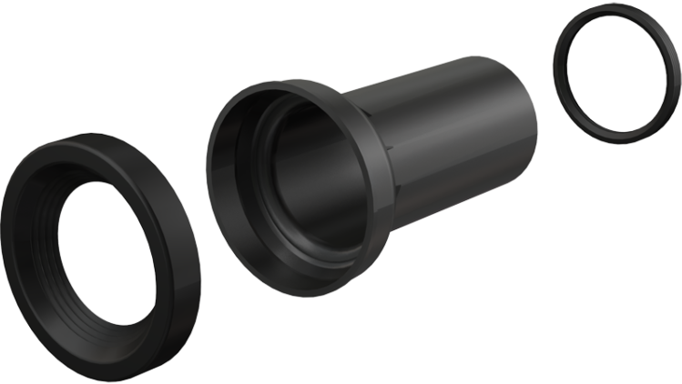 Патрубок сливной для подключения подвесного унитаза к стокам, полипропилен, Ø90 мм, с прокладками