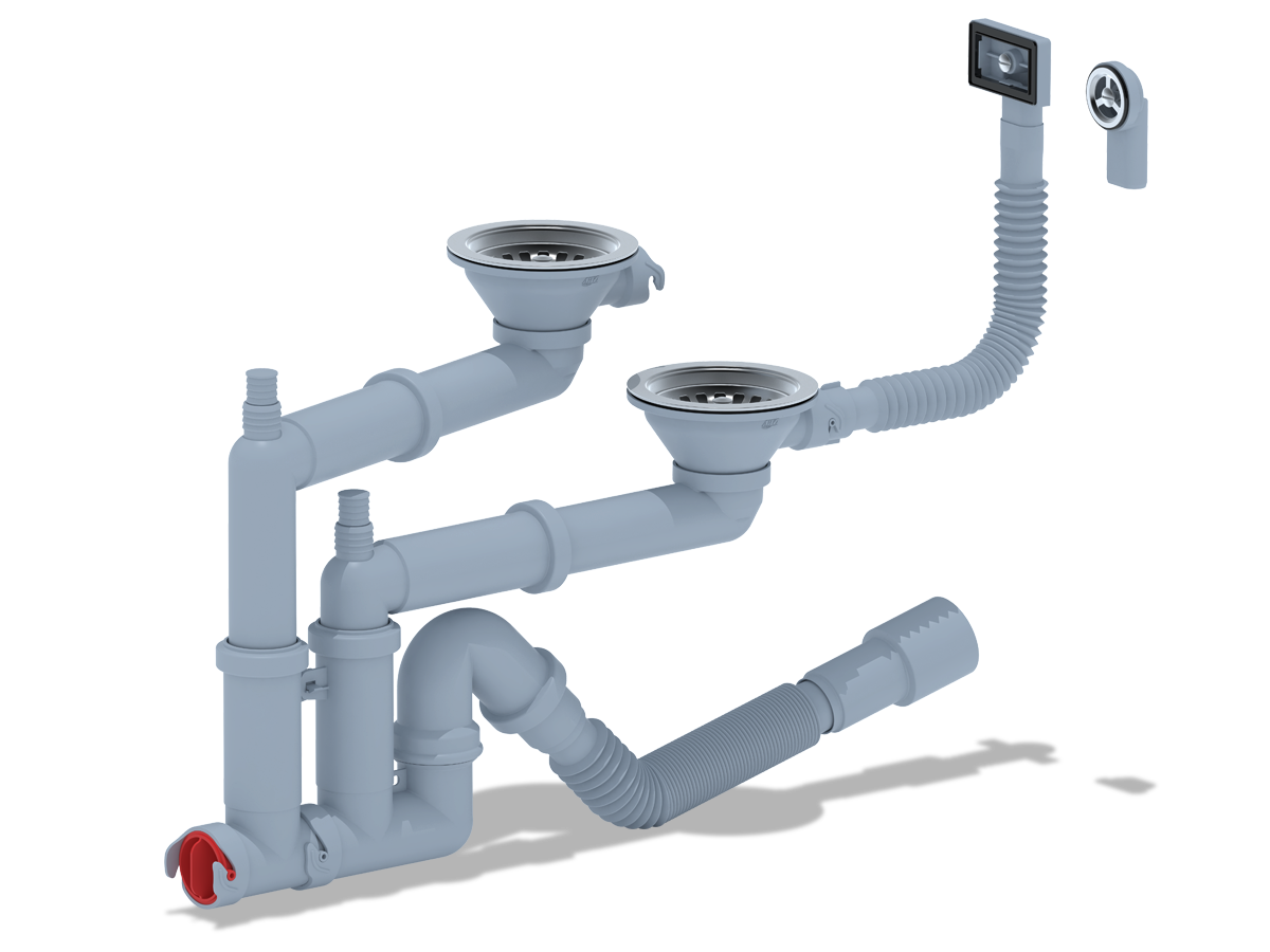 Сифон 2-ой Ани 3 1/2"*40 смещ. с отводом круг. и прямоуг. переливом с г/тр. 40х40/50
