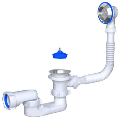 Сифон Ани 1-1/2" с выпуском и переливом, плоский