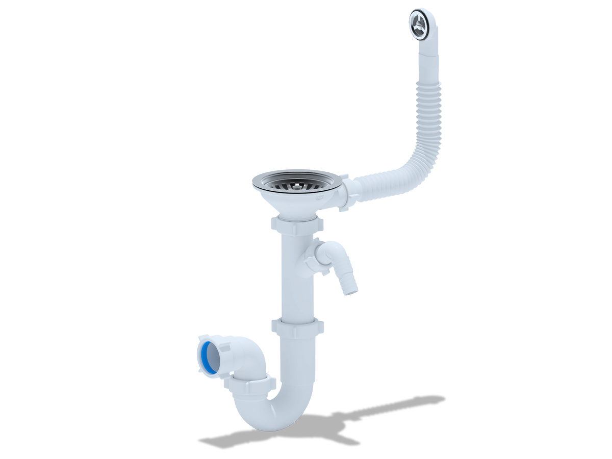D1042S Сифон АНИ 3 1/2"*40 прямоточный с отводом для стир. машины, с круглым гибким переливом