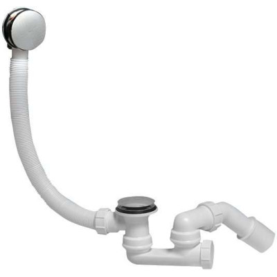 Слив-перелив McAlpine с автопереливом длиной 575 мм х 34 мм, сливом из нержавеющей стали 70 мм, выход D=40/50 мм хром предназначен для отвода воды из ванны. Представляет собой стандартный трап. Сифон выполняется из полипропилена и имеет белый цвет. В комплект поставки входит сифон в сборе, пластиковая переливная труба длиной 575 мм и диаметром 34 мм, отводная трубка 40/50 мм переходник для подключения к канализации, выпуски основного слива и перелива с решетками из нержавеющей стали диаметром 70 мм, пробка 50 мм для основного слива и поворотная металлическая головка на переливе. Принцип работы слива/перелива – автомат. Высота гидрозатвора составляет 50 мм. Пропускная способность сифона составляет 50 л/мин. Купить слив-перелив McAlpine с автопереливом длиной 575 мм х 34 мм, сливом из нержавеющей стали 70 мм, выход D=40/50 мм хром можно в интернет-магазине duim24.ru по самой выгодной цене с доставкой.