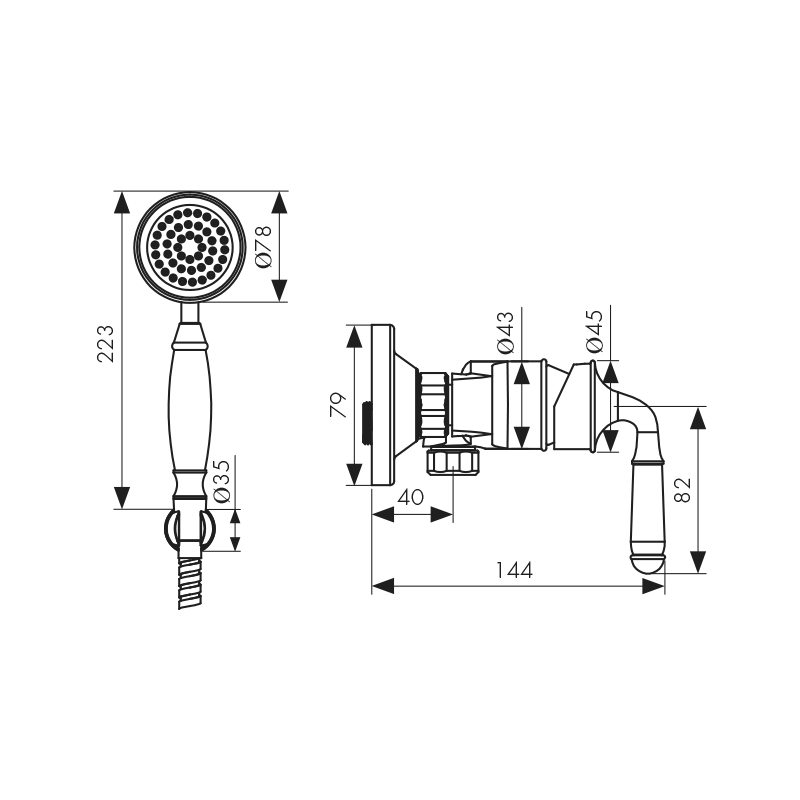 31577-1 KAISER Vincent Душ/кабина Ø35, латунь, (лейка: 1-jet, латунь)/Bronze