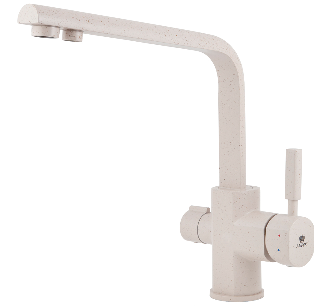 Смеситель Kaiser 40144-8 из коллекции Decor с подключением под фильтр. Для подачи питьевой воды на корпусе смесителя размещен рычаг. Смеситель имеет два аэратора для раздельного выхода проточной и фильтрованной воды, что исключает их смешивания. Преимущество совмещенных смесителей заключается в том, что не нужно делать дополнительных отверстий на мойке и устанавливать отдельный кран для питьевой воды.