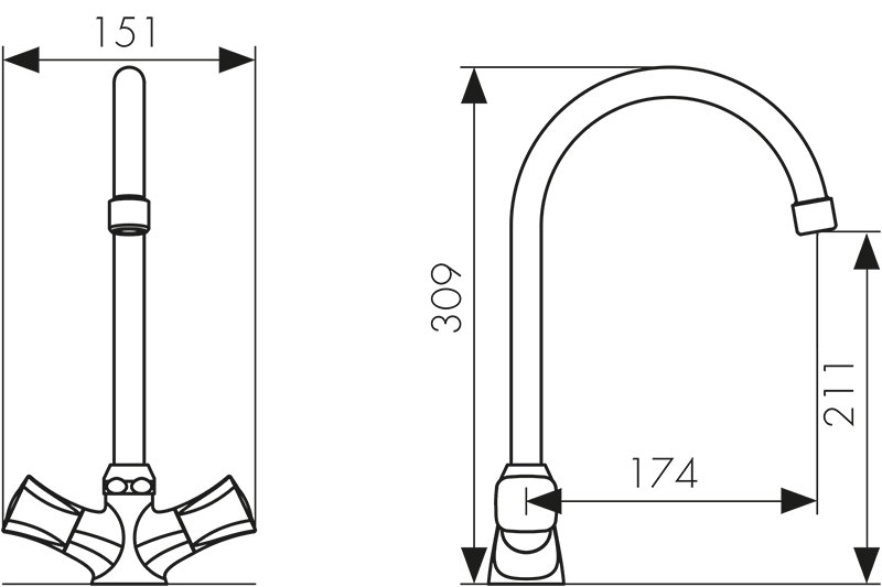 Смеситель 17233 Kaiser Topaz для кухни с двумя рукоятками. Поток воды направлен под углом 10˚.