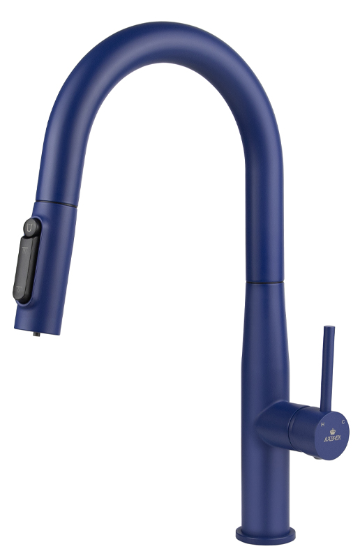 Смеситель KAISER Vita для кухни с вытяжной лейкой и подачей фильтрованной воды,  цвет покрытия синий