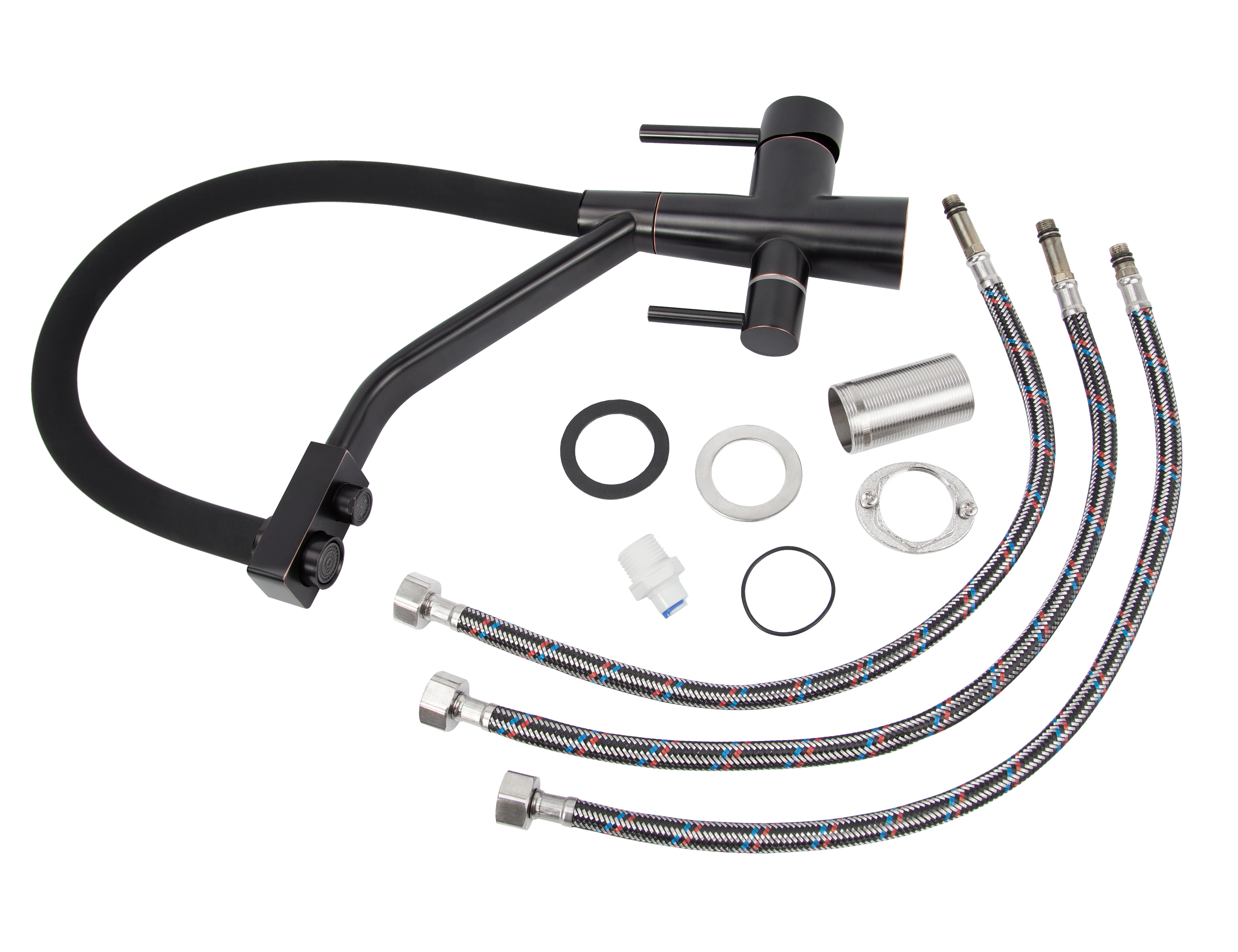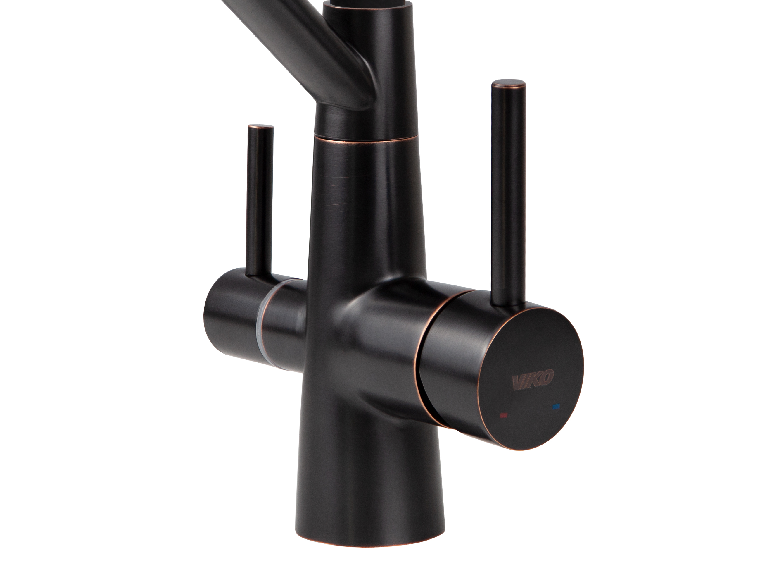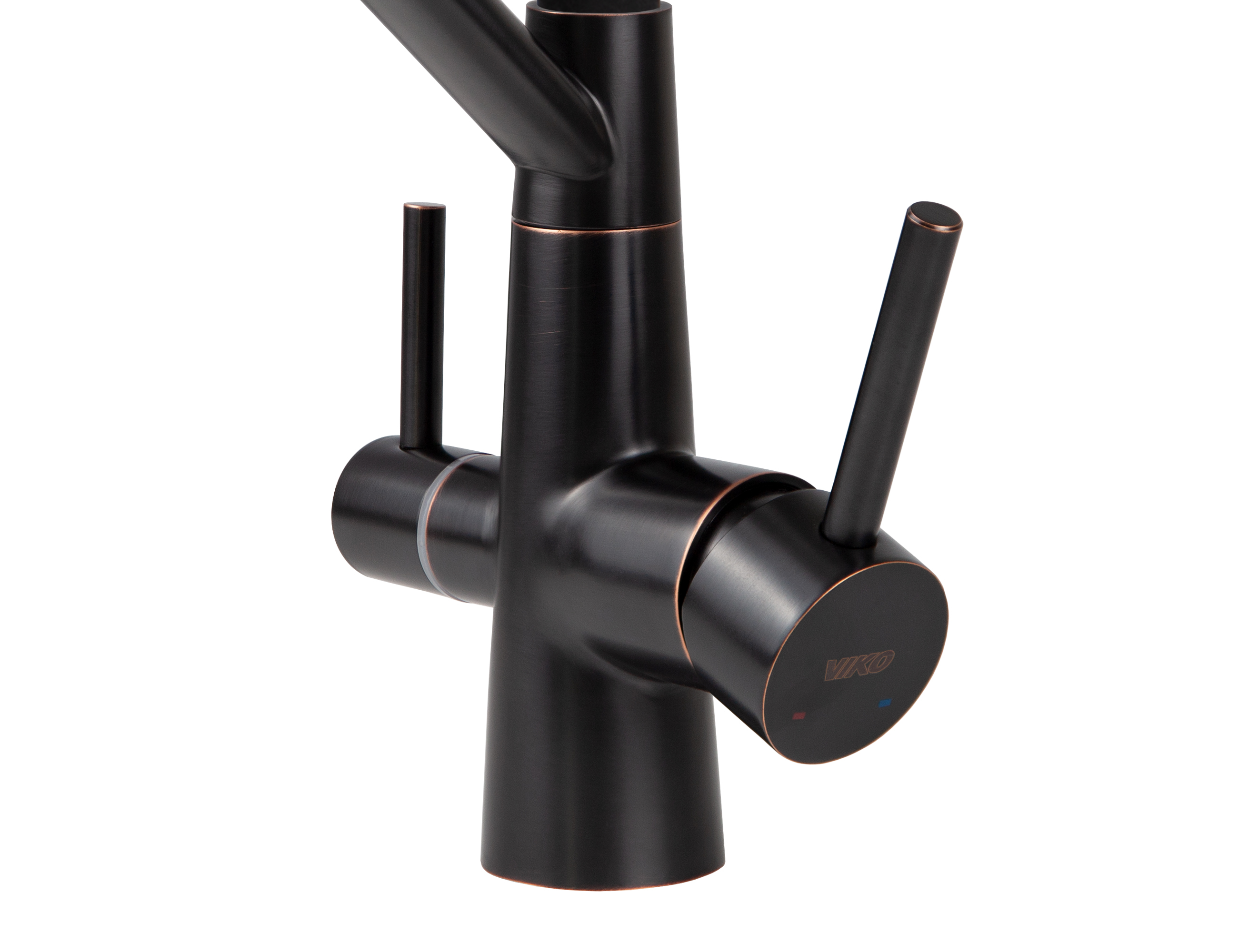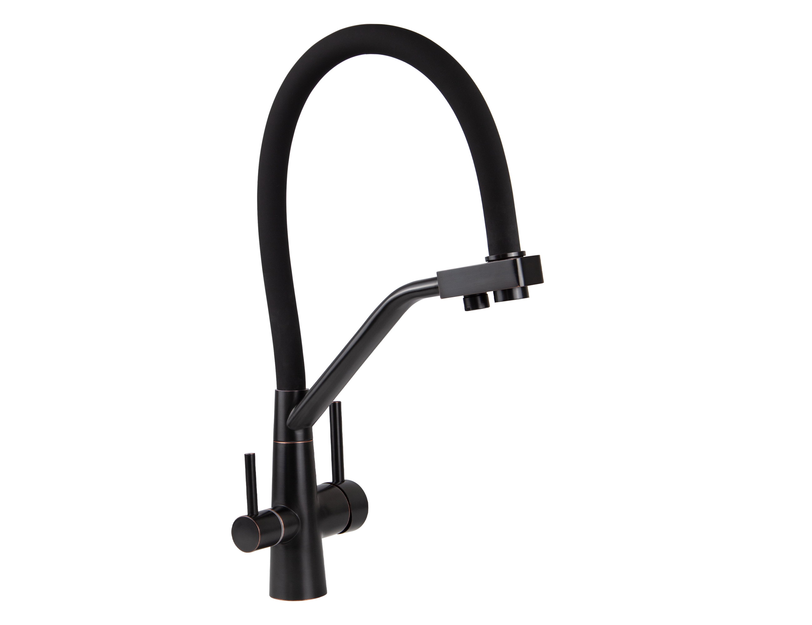 Смеситель VIKO для кухни под фильтр с гибким изливом Ø35, нерж. сталь (корпус/излив: бронза черная/черный)