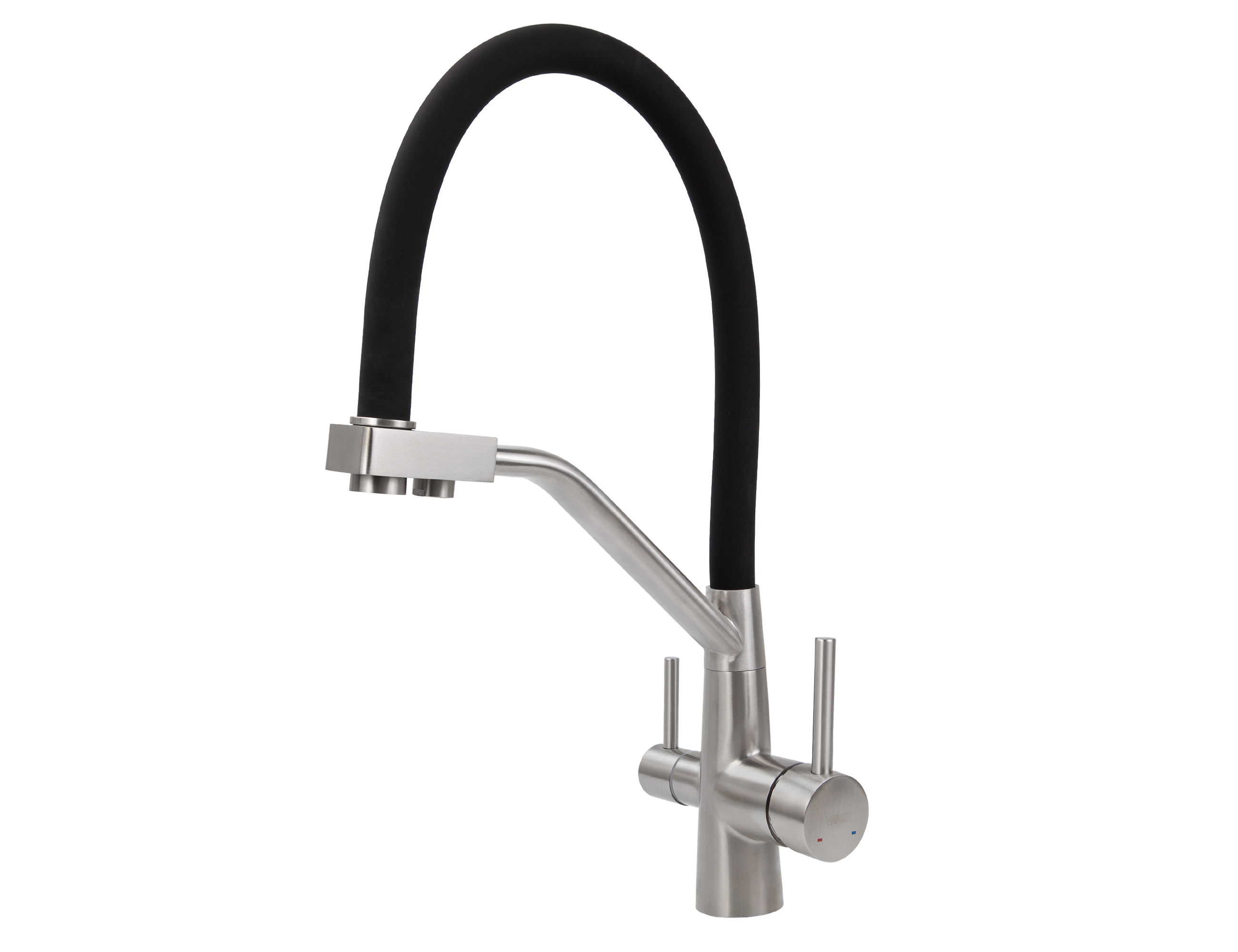Смеситель VIKO для кухни под фильтр с гибким изливом Ø35,нерж. сталь (корпус/излив: серебро/черный)