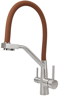 Смеситель VIKO для кухни под фильтр с гибким изливом Ø35, нерж. сталь (корпус/излив: серебро/коричневый)