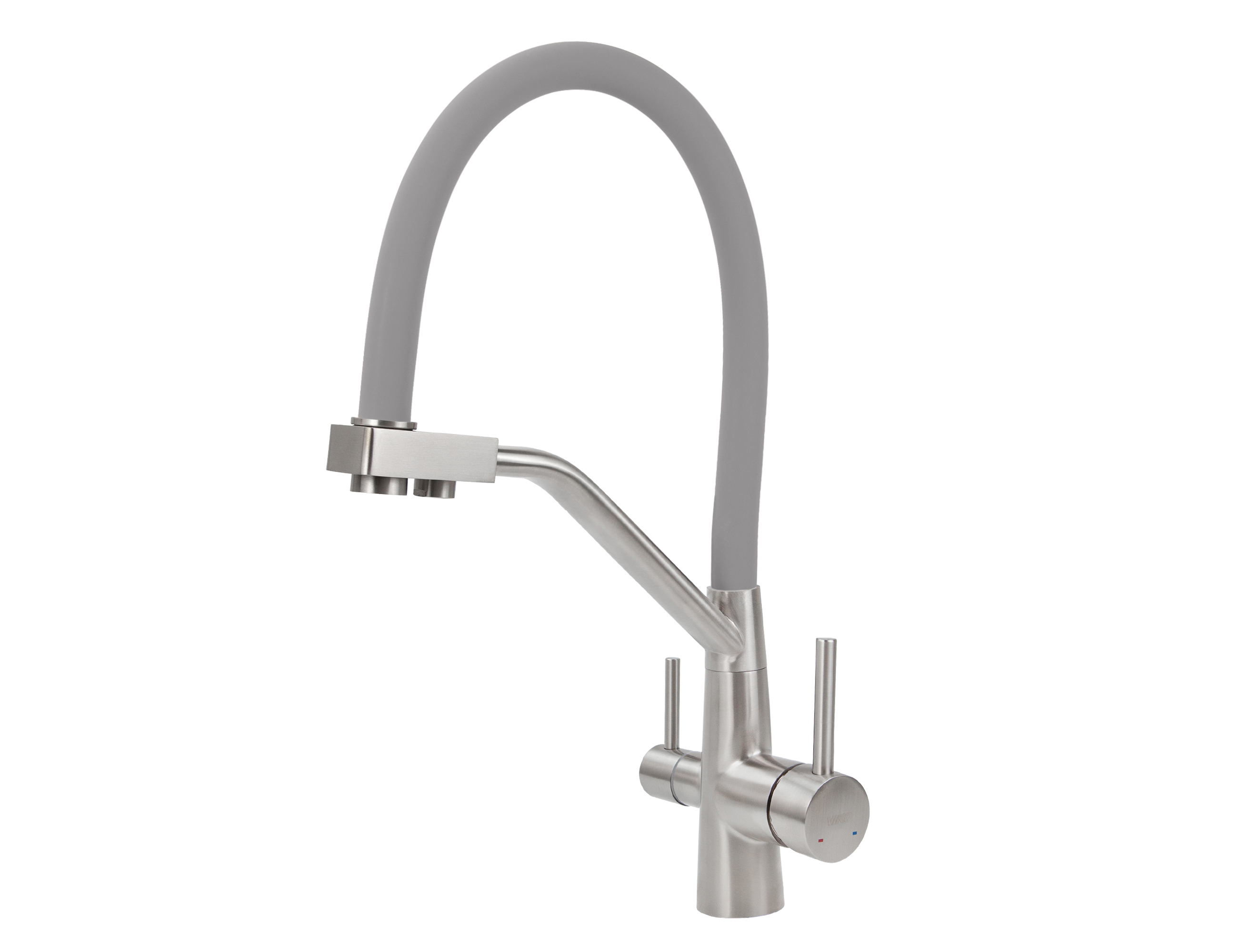 Смеситель VIKO для кухни под фильтр с гибким изливом Ø35, нерж. сталь (корпус/излив: серебро/серый)