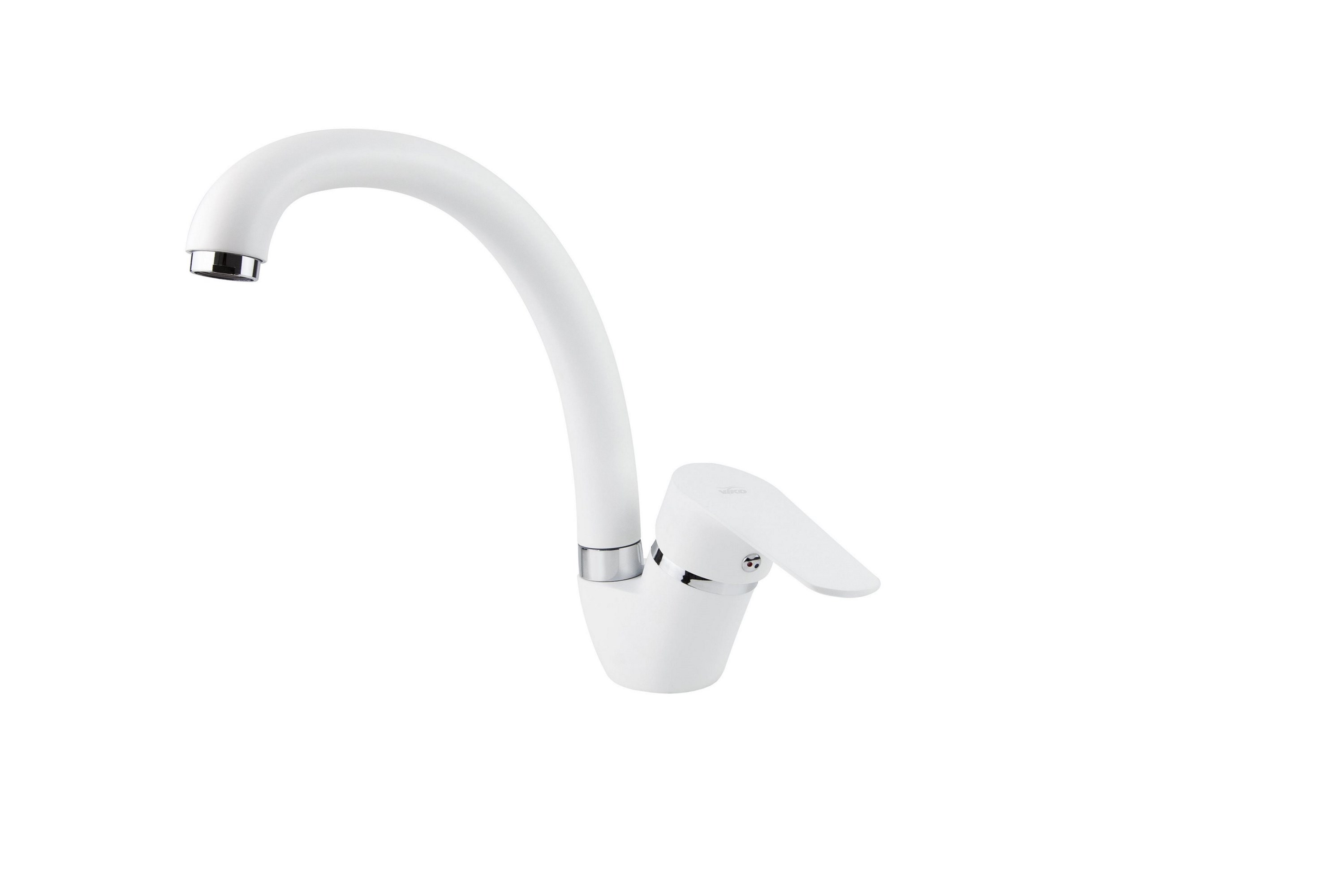Смеситель VIKO V-4544 для кухни, белый, хром, излив поворотный, цинковый сплав
