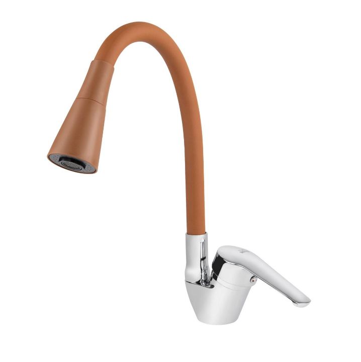 Смеситель VIKO кухня боковой Ø40 с гайкой коричневым гибким изливом (2-jet)