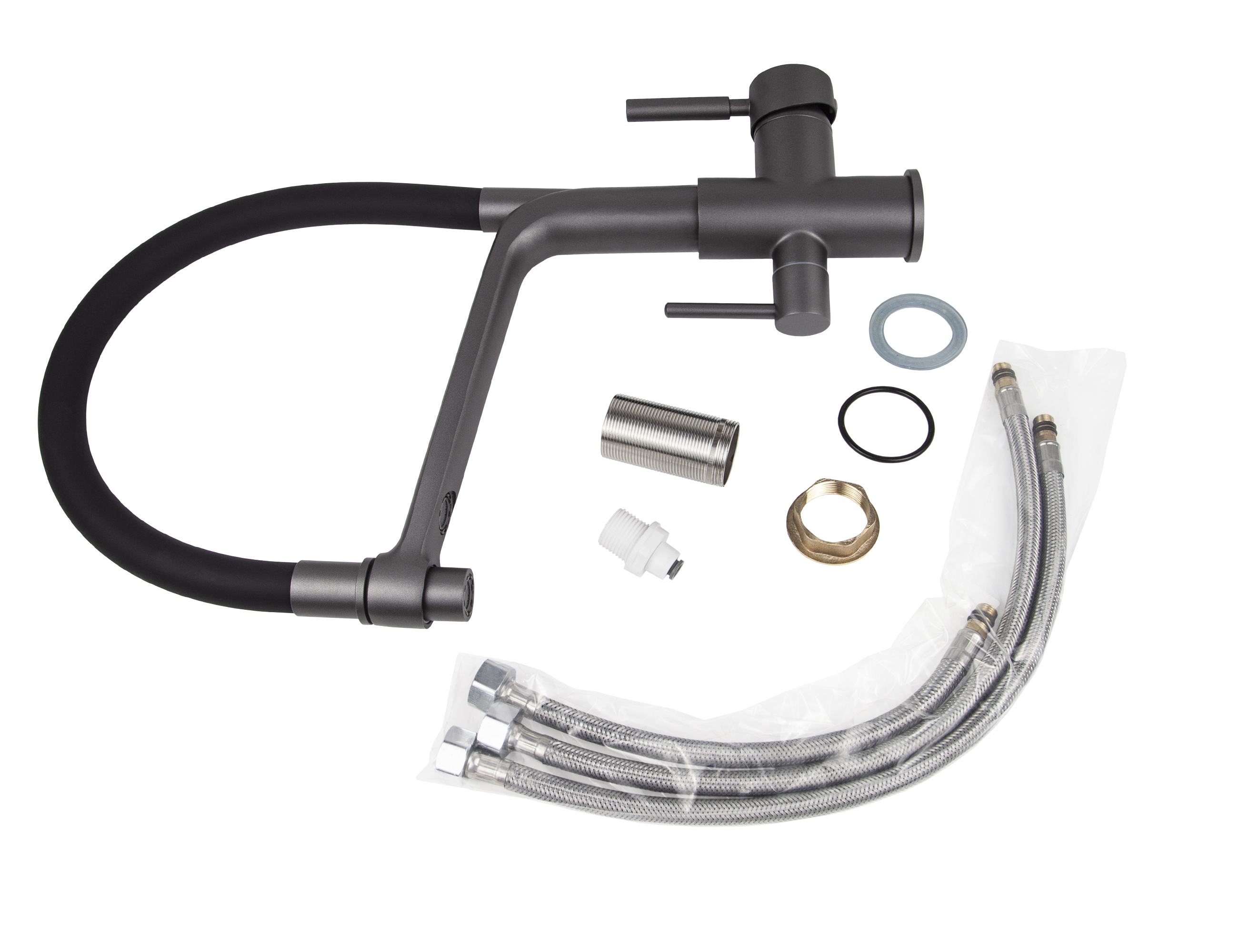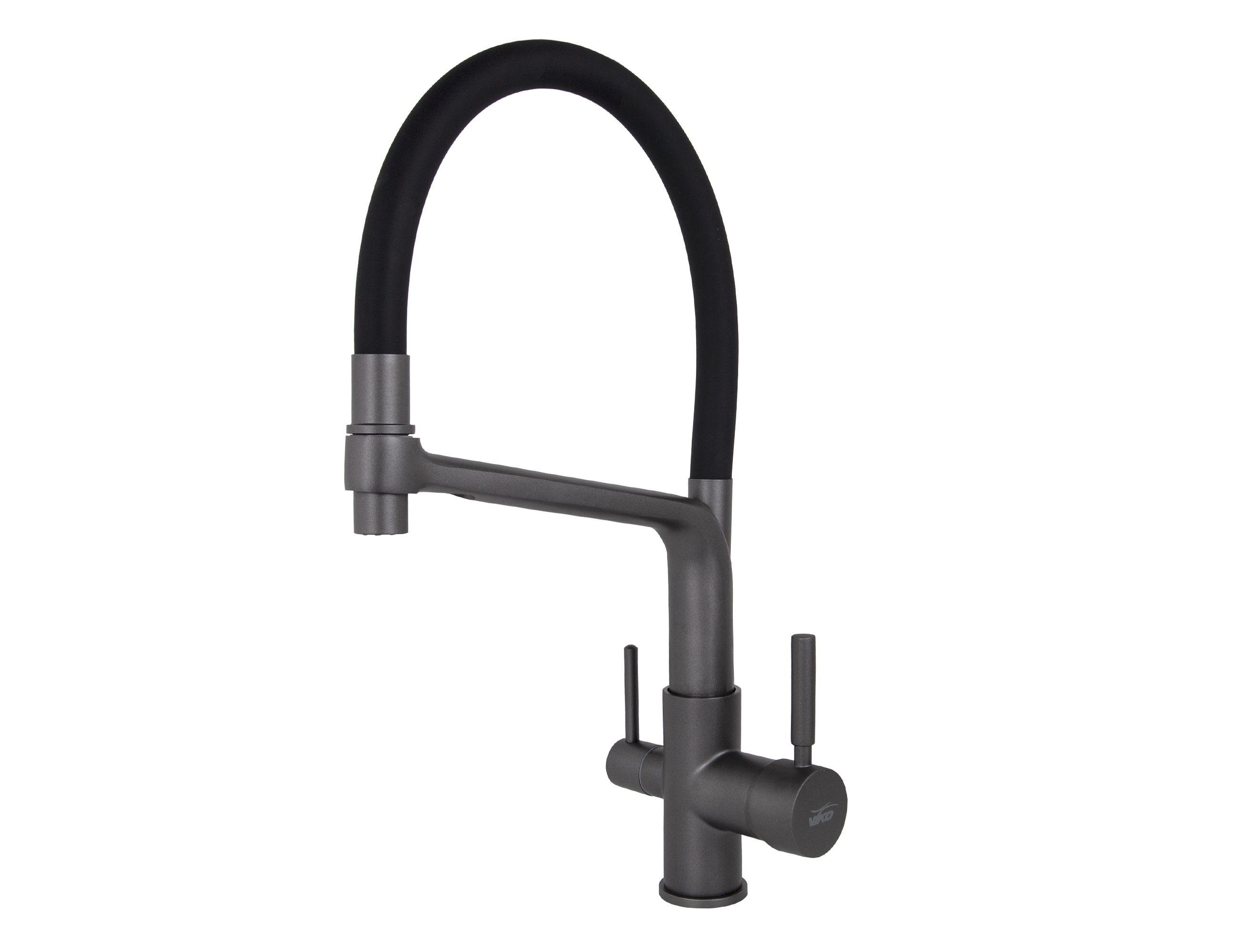 5607 VIKO кухня боковой под фильтр Ø35 (латунь) с черным гибким изливом Gunmetal