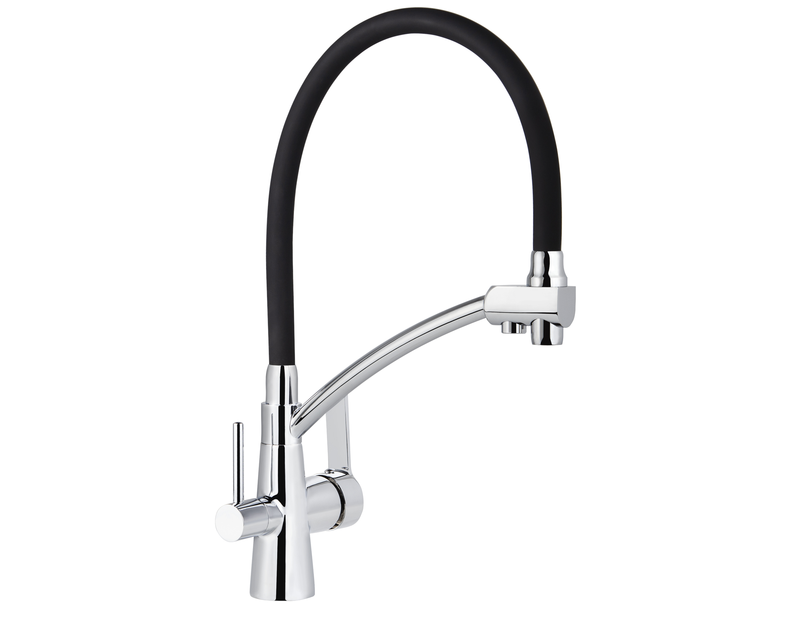 Смеситель VIKO кухня боковой под фильтр Ø35 (латунь) с черным гибким изливом, корпус: хром