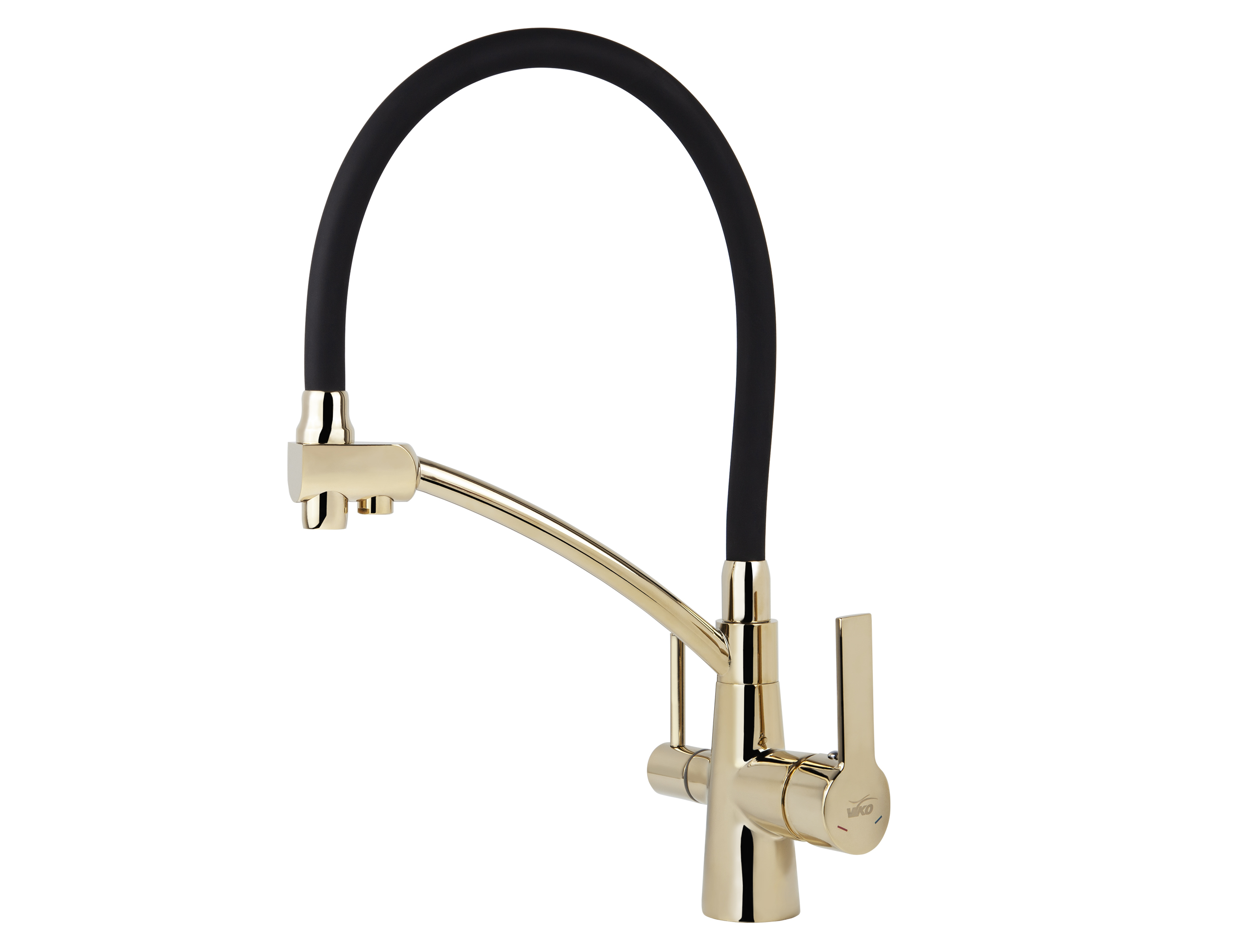 Смеситель VIKO кухня боковой под фильтр Ø35 (латунь) с черным гибким изливом, корпус: золото