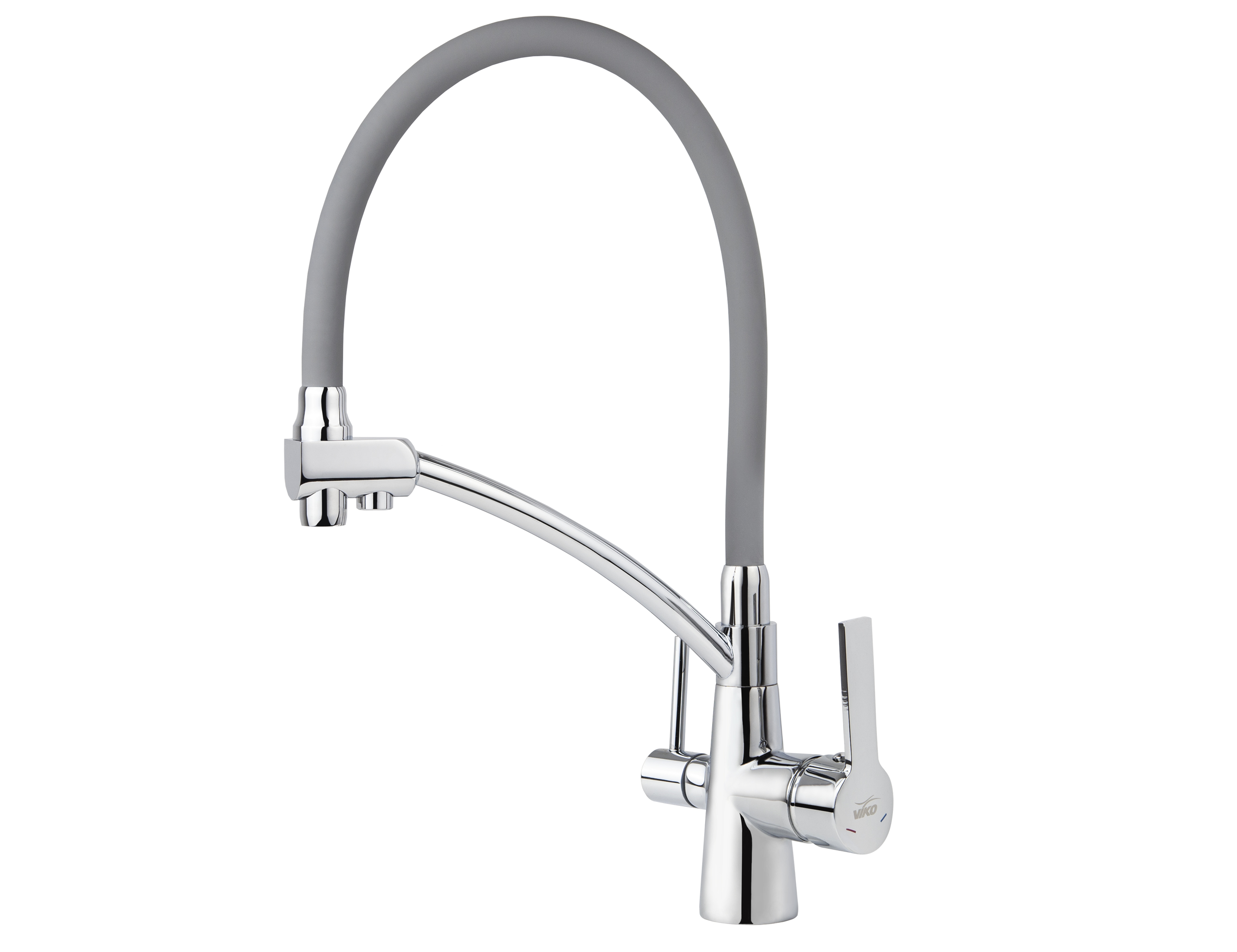 Смеситель VIKO кухня боковой под фильтр Ø35 (латунь) с гибким серым изливом, корпус: хром