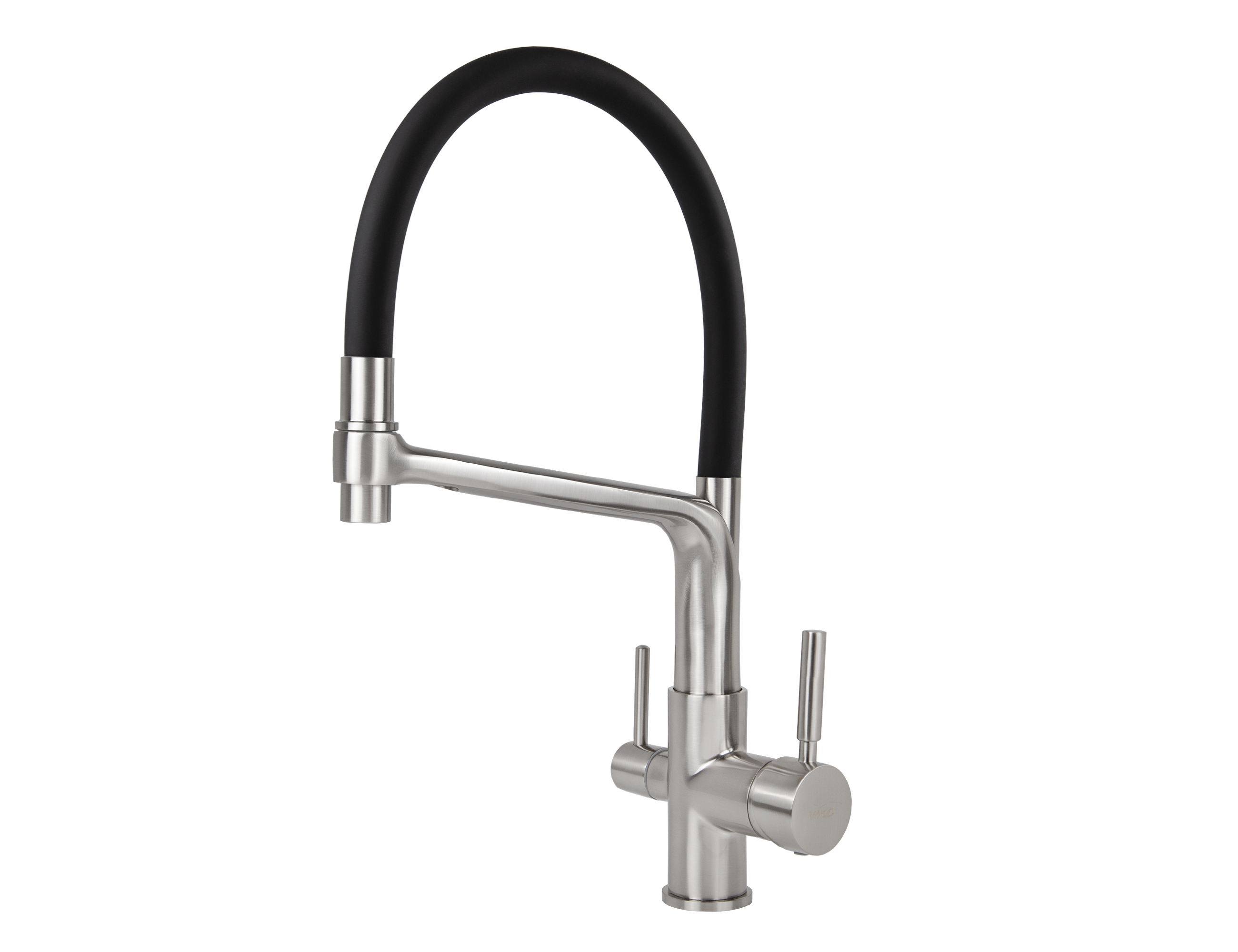 Смеситель VIKO кухня боковой под фильтр Ø35 с черным гибким изливом, корпус: серебро (латунь)