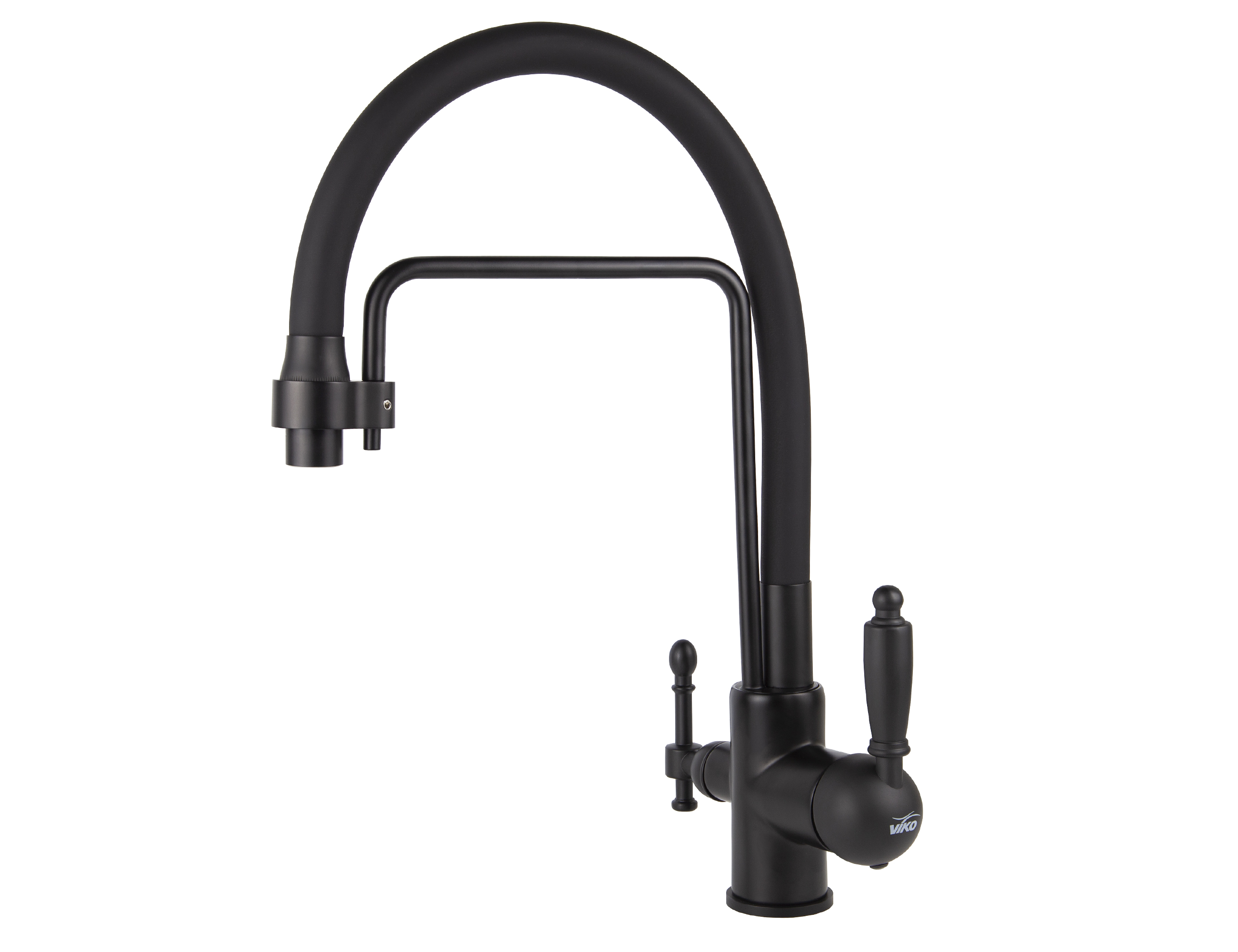 Смеситель VIKO V-5612 , чёрный, излив гибкий, поворотный, под фильтр, латунь