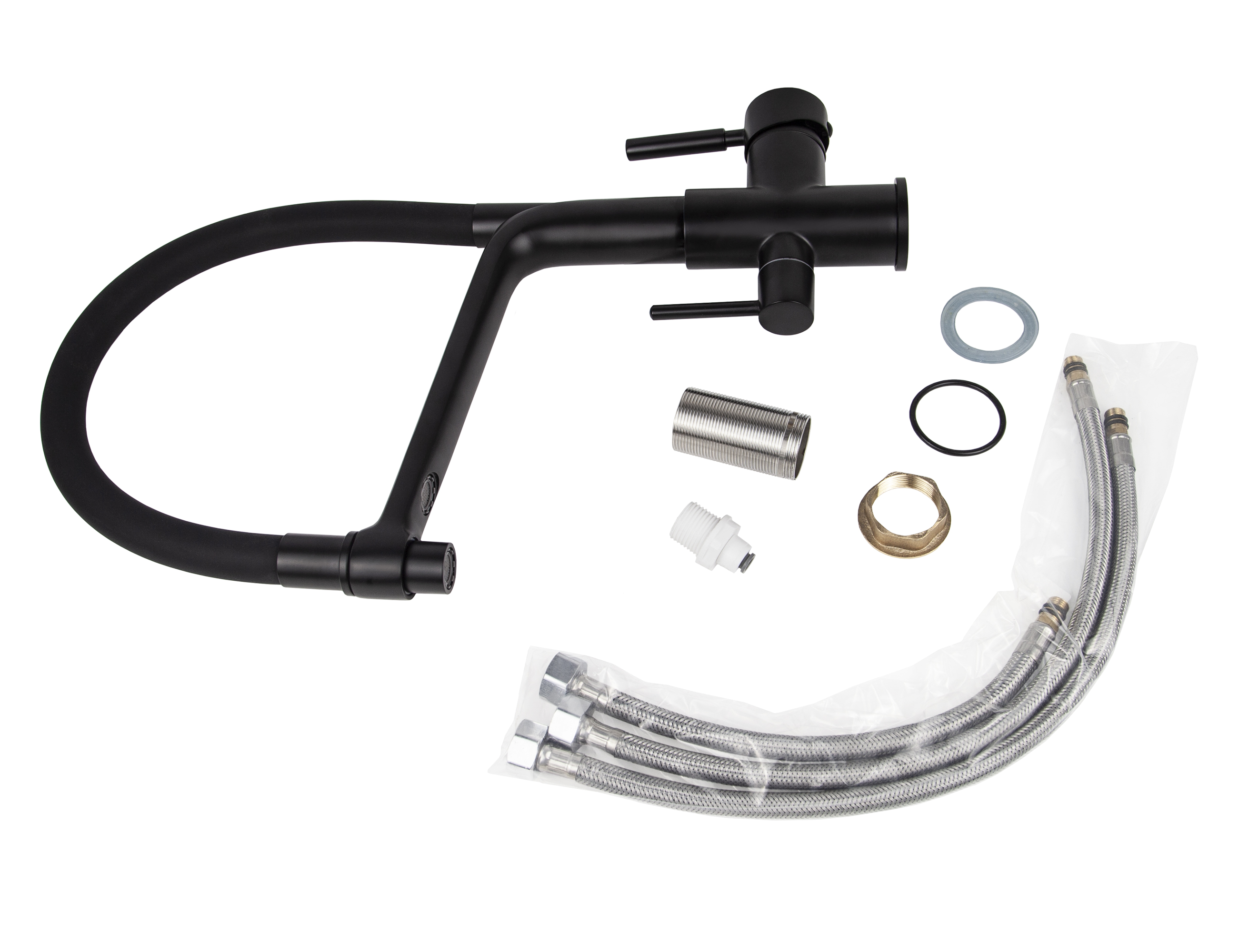 Смеситель VIKO кухня боковой под фильтр Ø35 с черным гибким изливом, латунь, корпус: черный матовый (латунь)