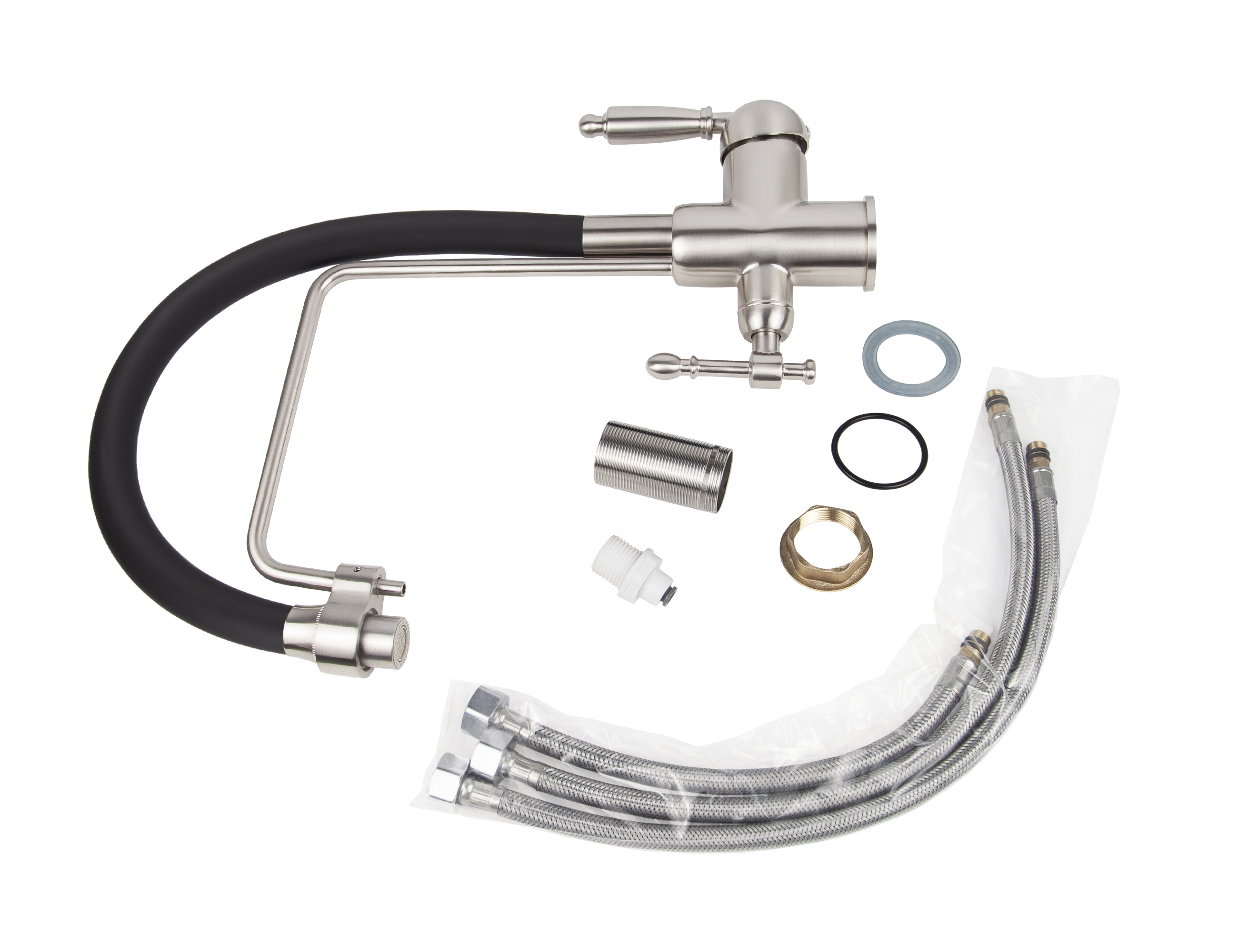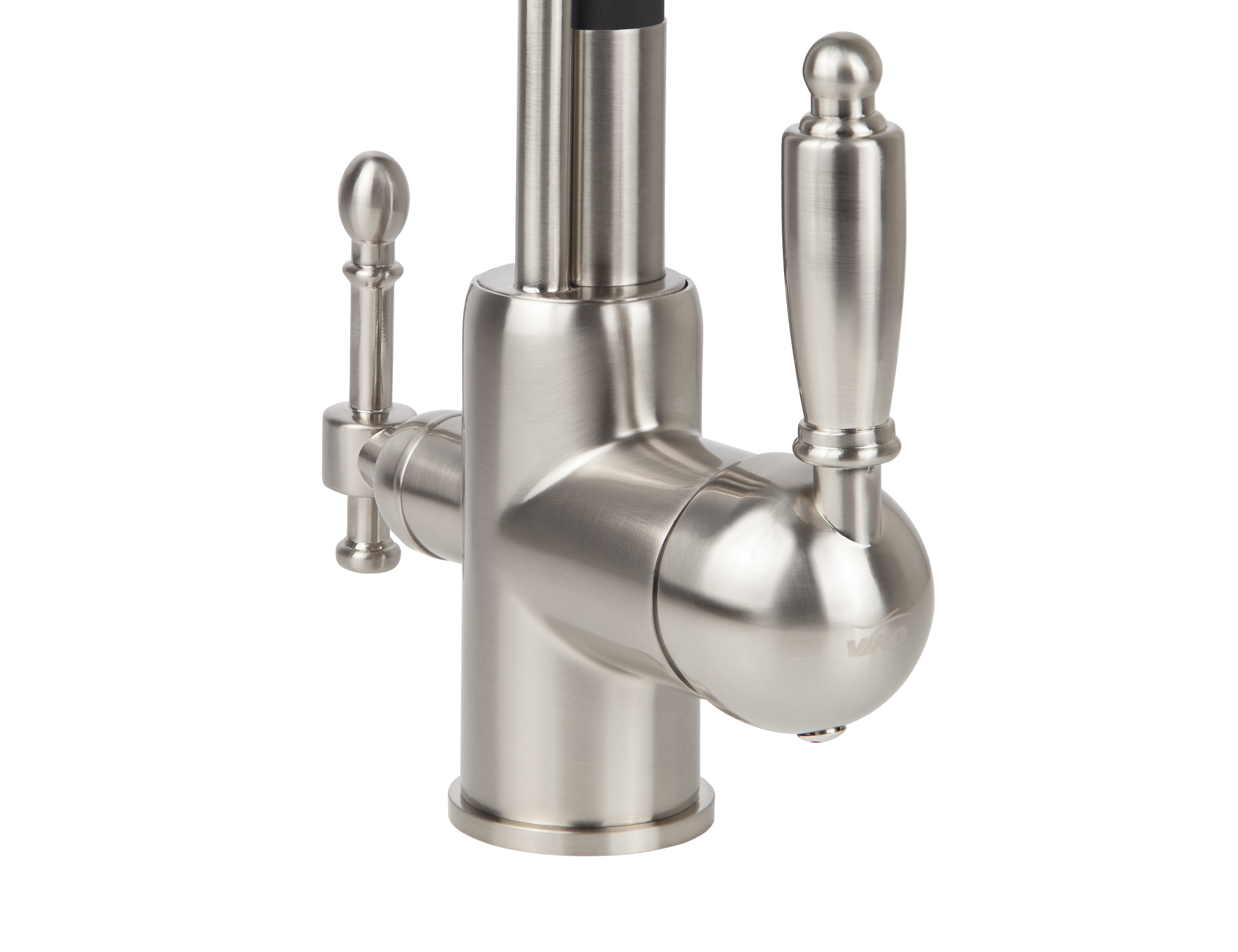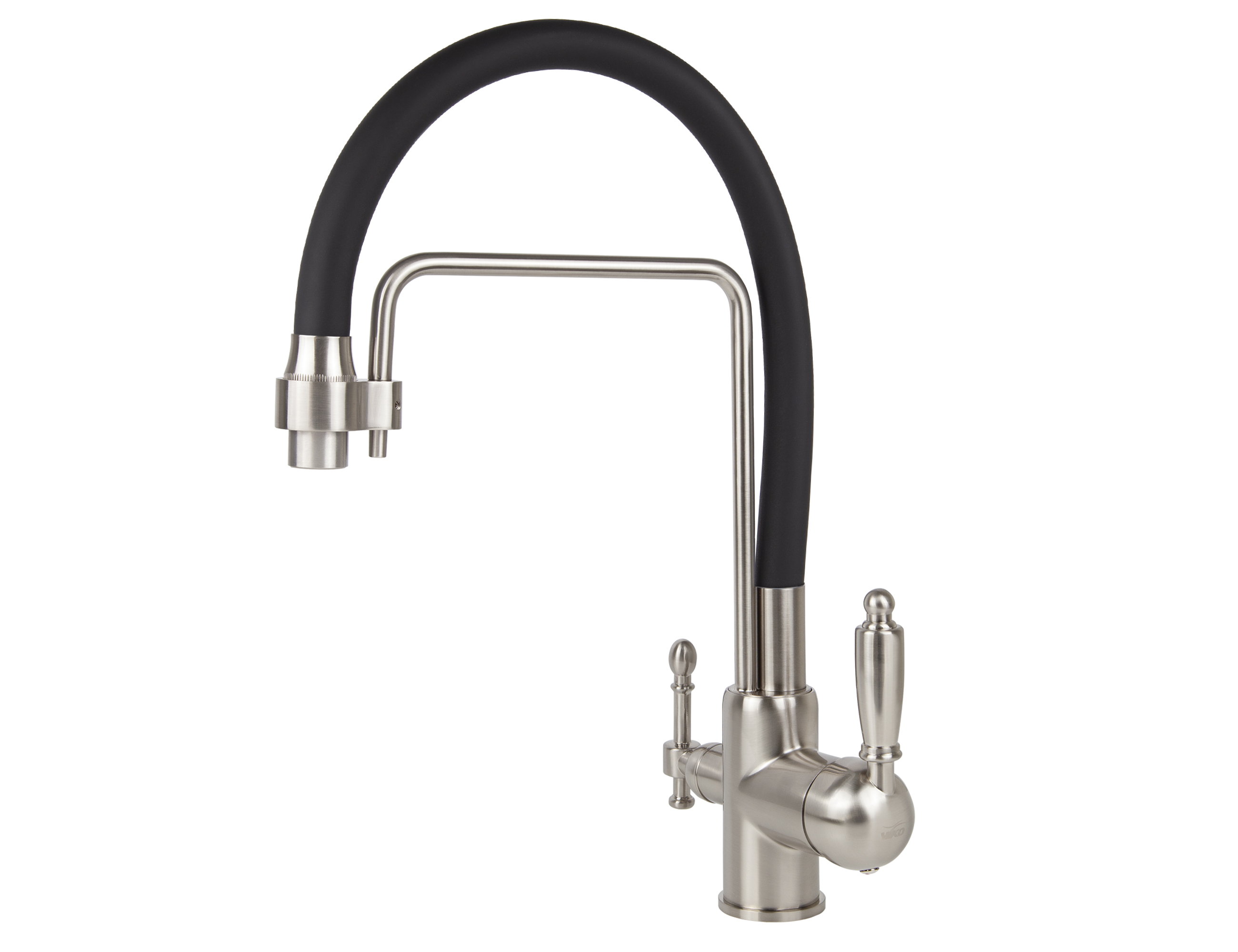 Смеситель VIKO кухня боковой под фильтр Ø35 с гибким черным изливом, латунь, корпус: серебро
