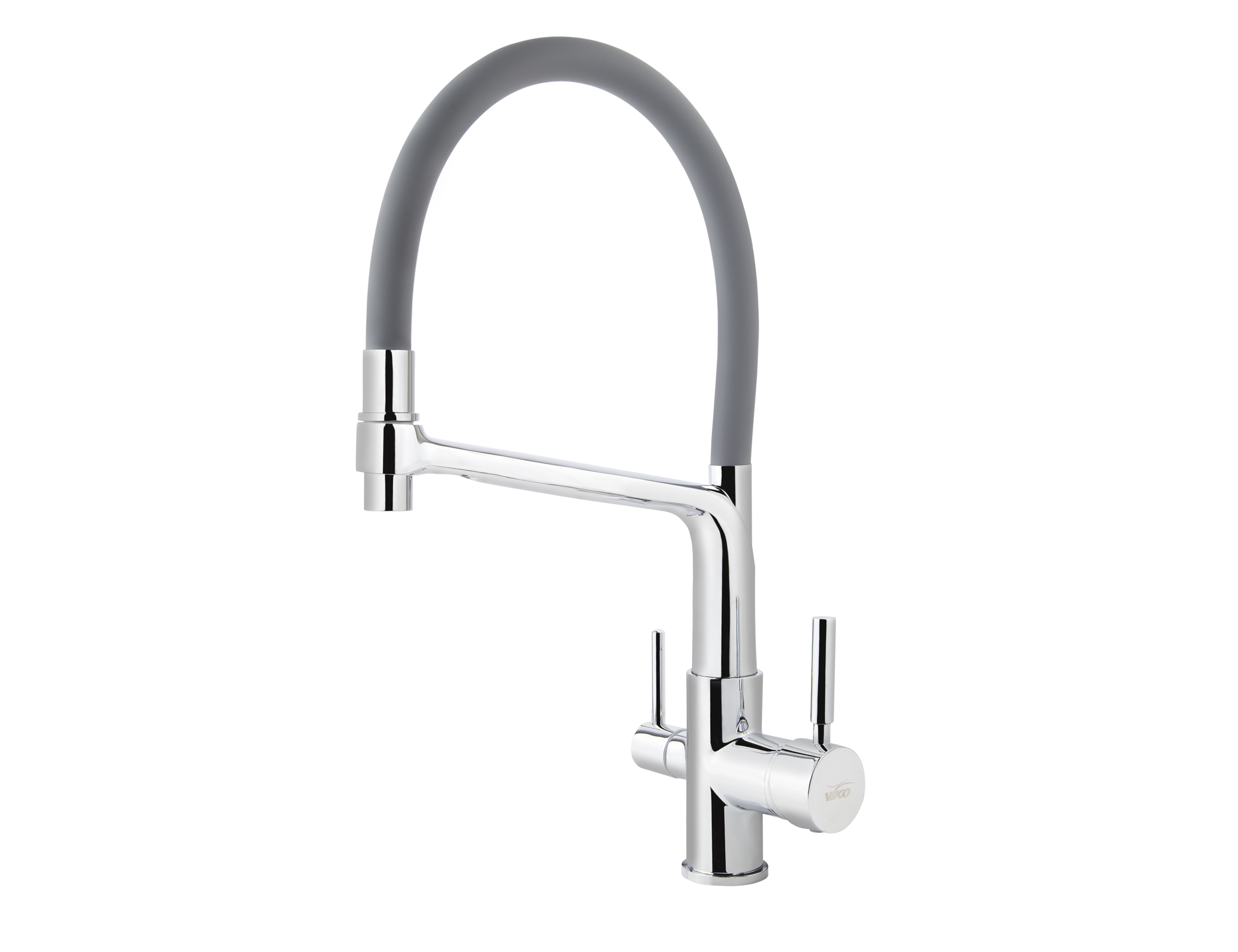 Смеситель VIKO кухня боковой под фильтр Ø35 с гибким серым изливом, корпус: хром (латунь)