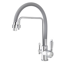 Смеситель VIKO кухня боковой под фильтр Ø35 с гибким серым изливом, латунь, серебро