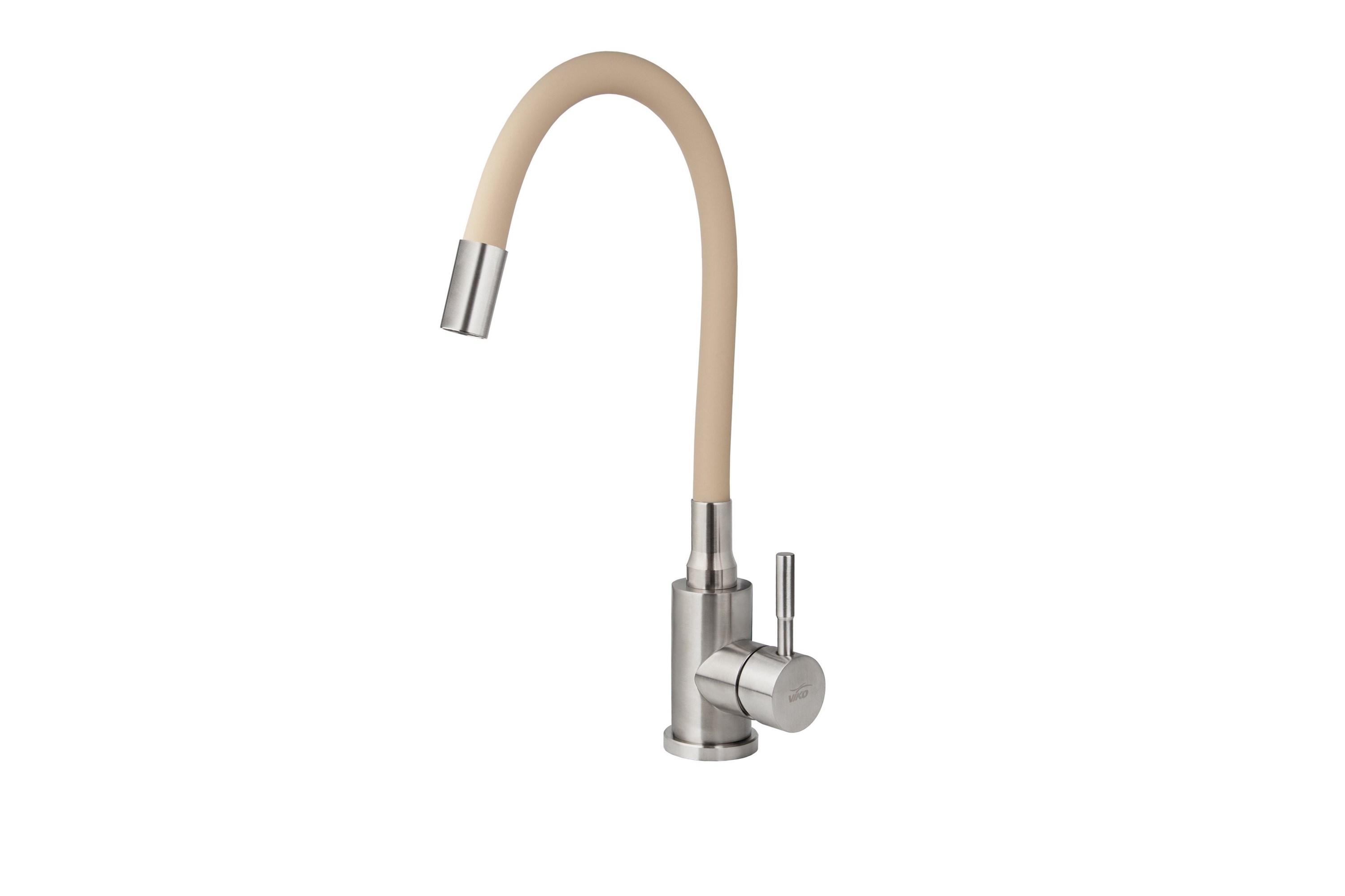 4438 VIKO кухня боковой с бежевым гибким изливом Ø35 с гайкой (нерж. сталь), Silver