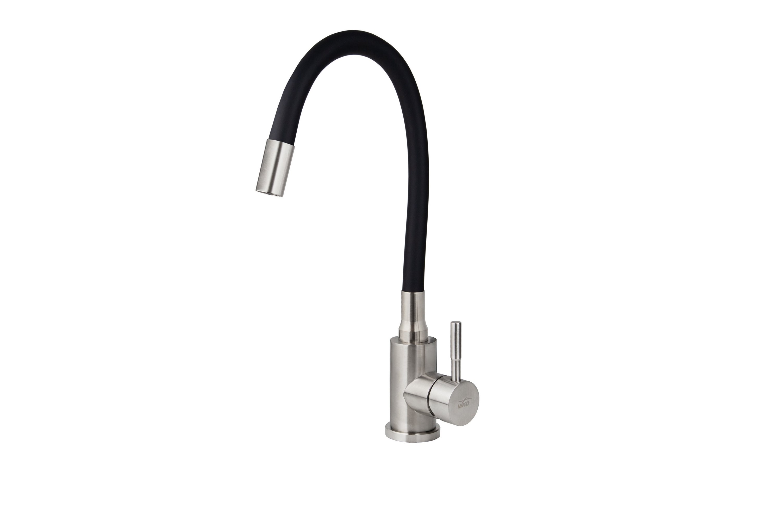 4428 VIKO кухня боковой с черным гибким изливом Ø35 с гайкой (нерж. сталь), Silver