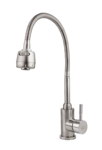 Смеситель VIKO кухня боковой с гибким изливом Ø35 с гайкой (нерж. сталь)/серебро