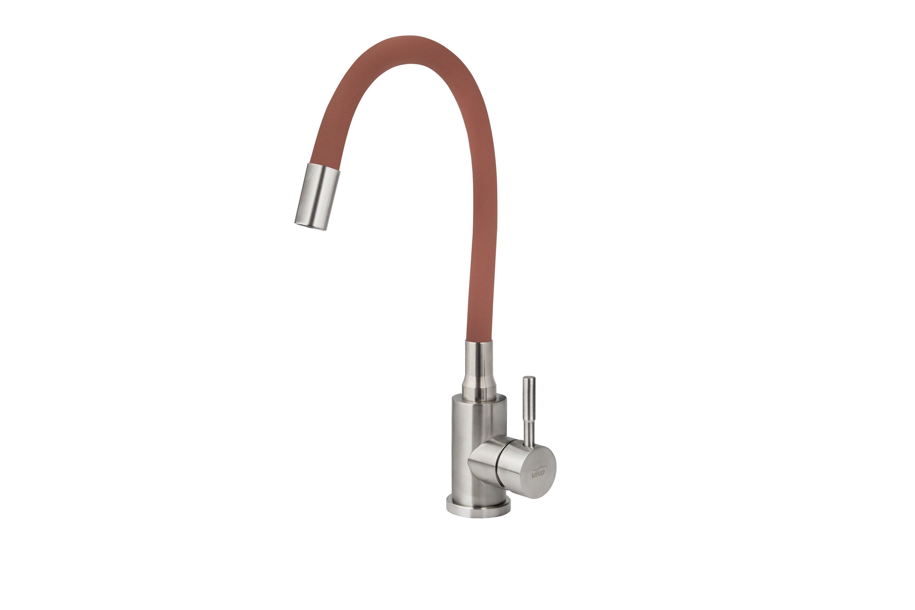 4458 VIKO кухня боковой с коричневым гибким изливом Ø35 с гайкой (нерж. сталь), Silver