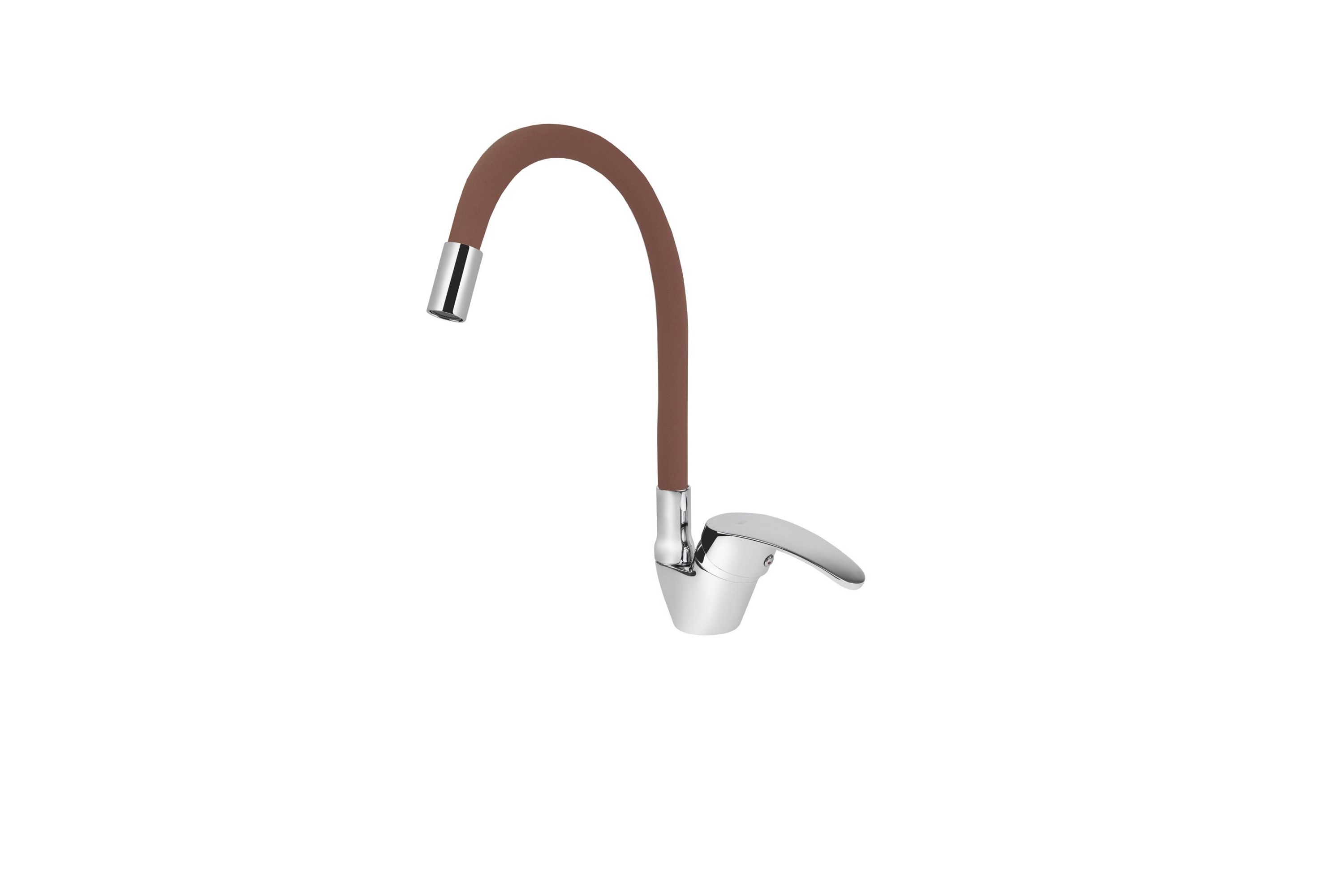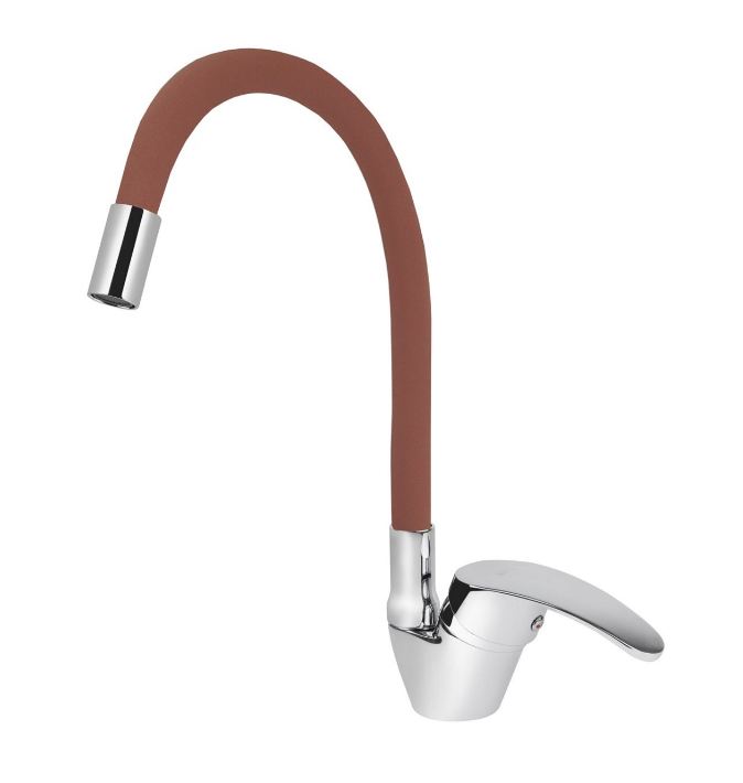Смеситель VIKO кухня боковой с коричневым гибким изливом Ø40 с гайкой, хром