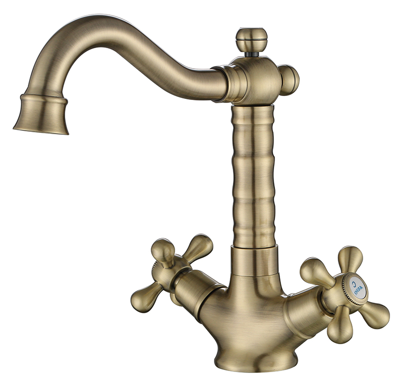 Смеситель KAISER Carlson Style для раковины крест керамика (бронза)