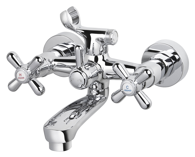 Смеситель KAISER Carlson для ванны к/н крест керамика с душем
