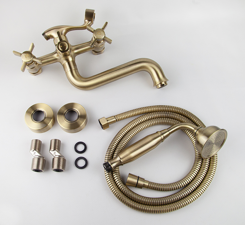 41022-1 KAISER Cross ванна к/н крест керамика с душем, лейка латунь, Bronze
