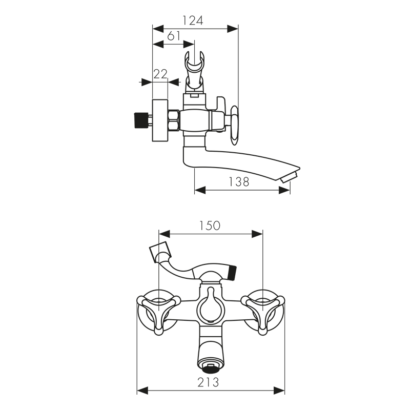 Смеситель KAISER Trio ванна излив 15 см кер 3-листник черный