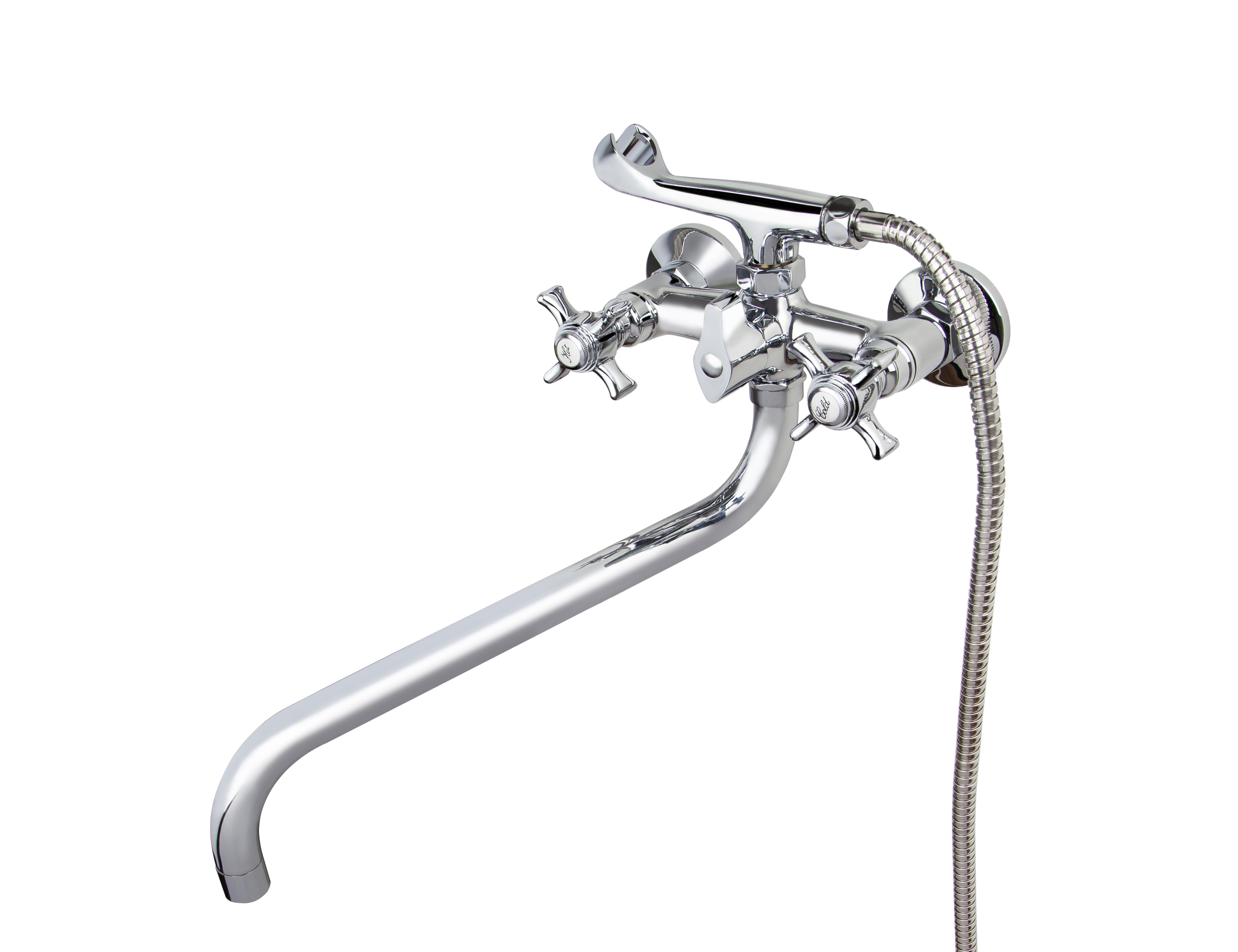 Смеситель VIKO ванна крест керамика (карт/переключатель) 1-jet, круглый излив LUX-35см