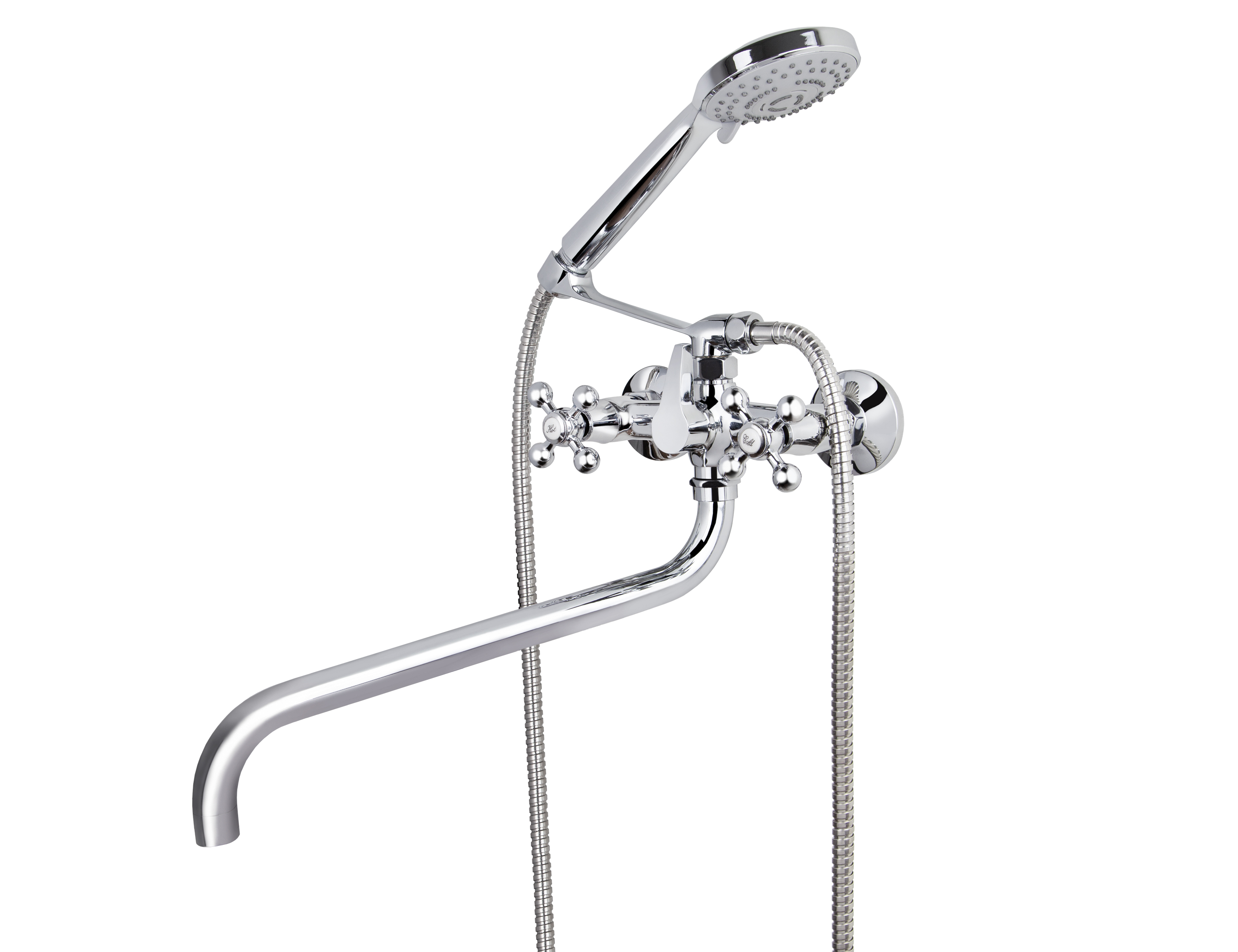 Смеситель VIKO ванна крест керамика шар/переключатель) 3-jet, с огр. круглый излив LUX-35см