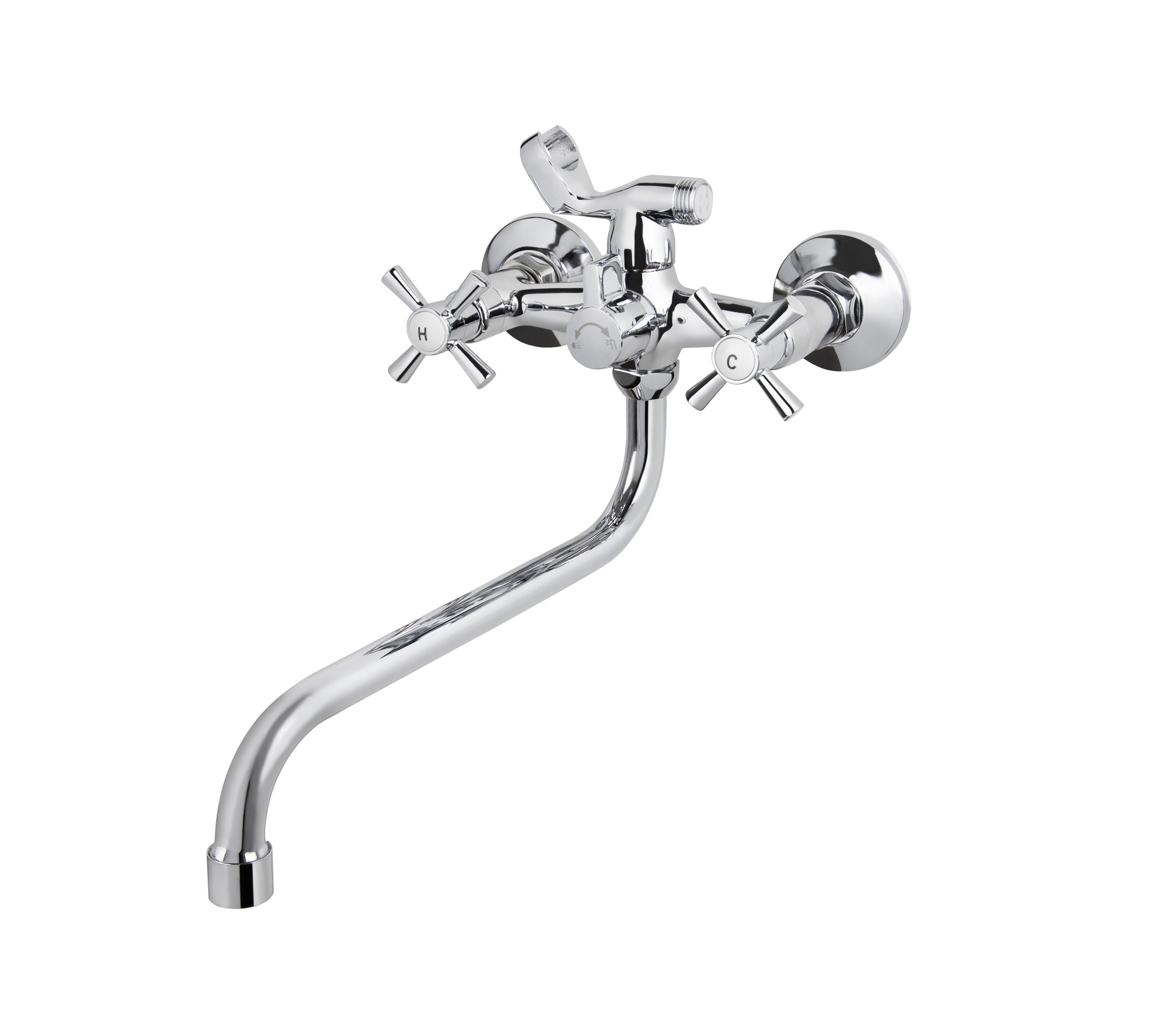 Смеситель VIKO ванна крест керамика (шар./переключатель) круглый излив 28см