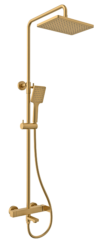 Душевая система KAISER Cube Ø25 (1-jet/стац. лейка: 260х188 ) /Латунь /Шлифованное золото